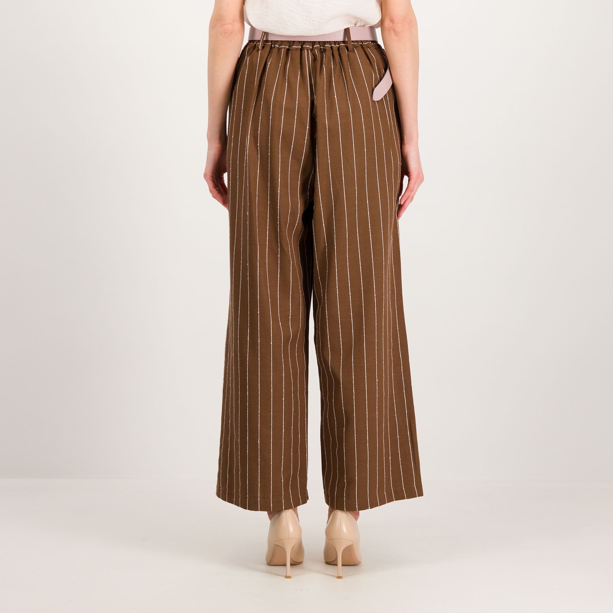 • pantaloni lunghi ampi in cotone con gessatura bouclé