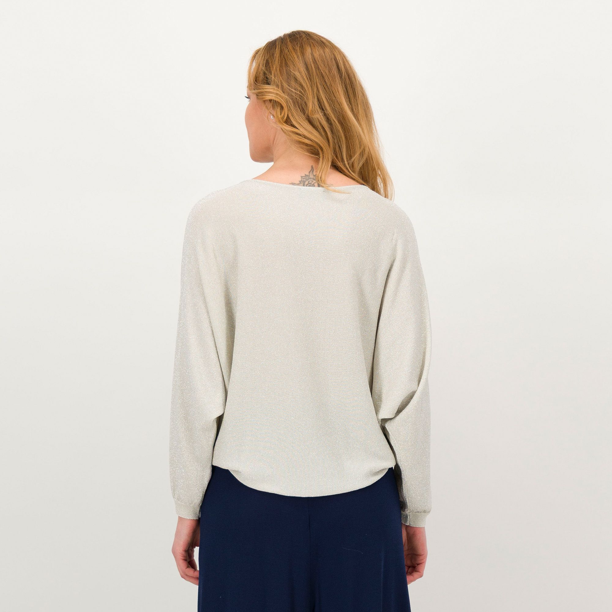 • maglia a scatoletta in filato misto viscosa con lamé