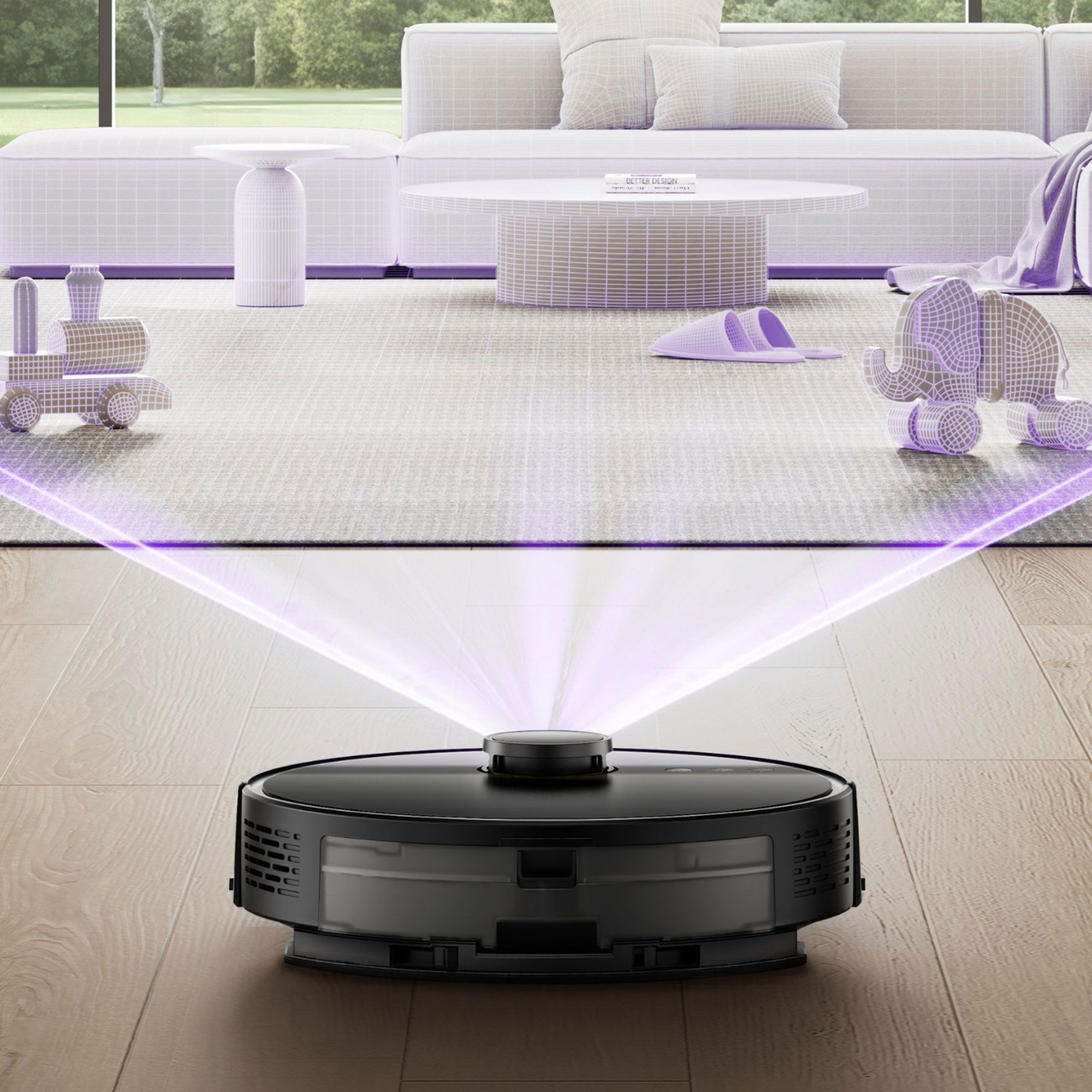 • il design compatto e l’altezza di soli 9,7 cm permettono al robot di passare sotto la maggior parte dei mobili