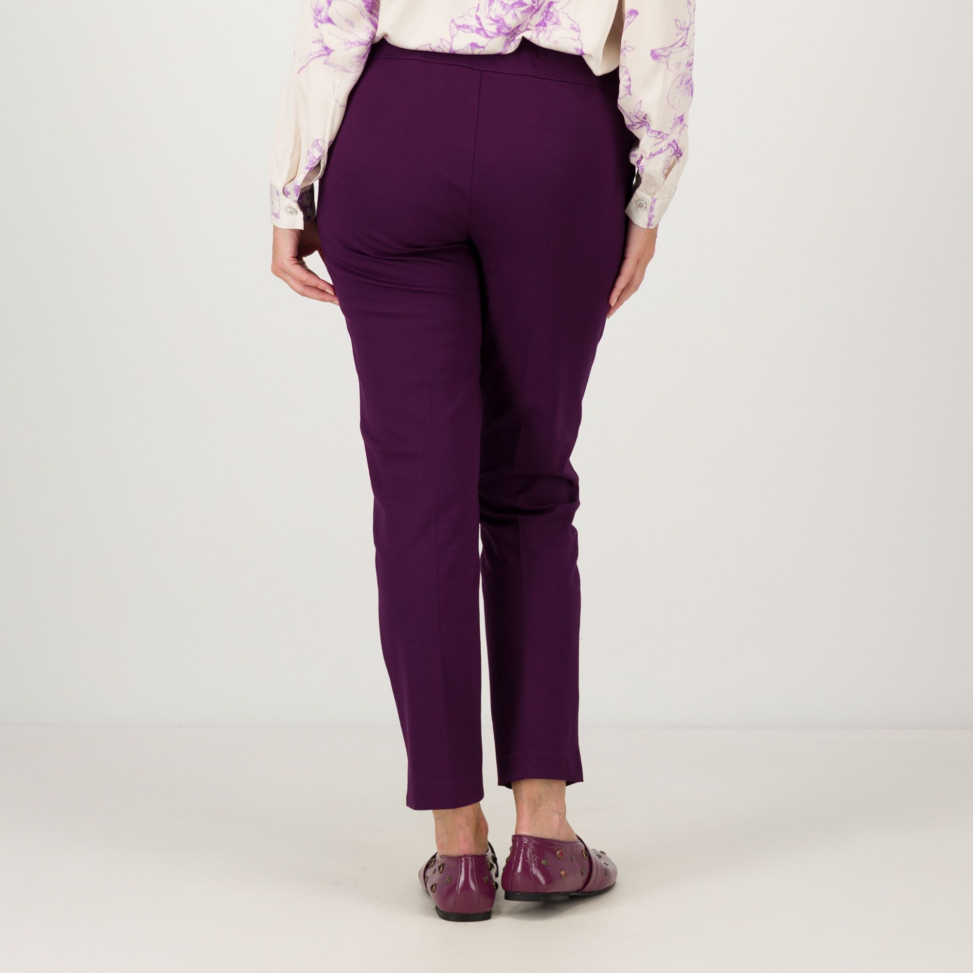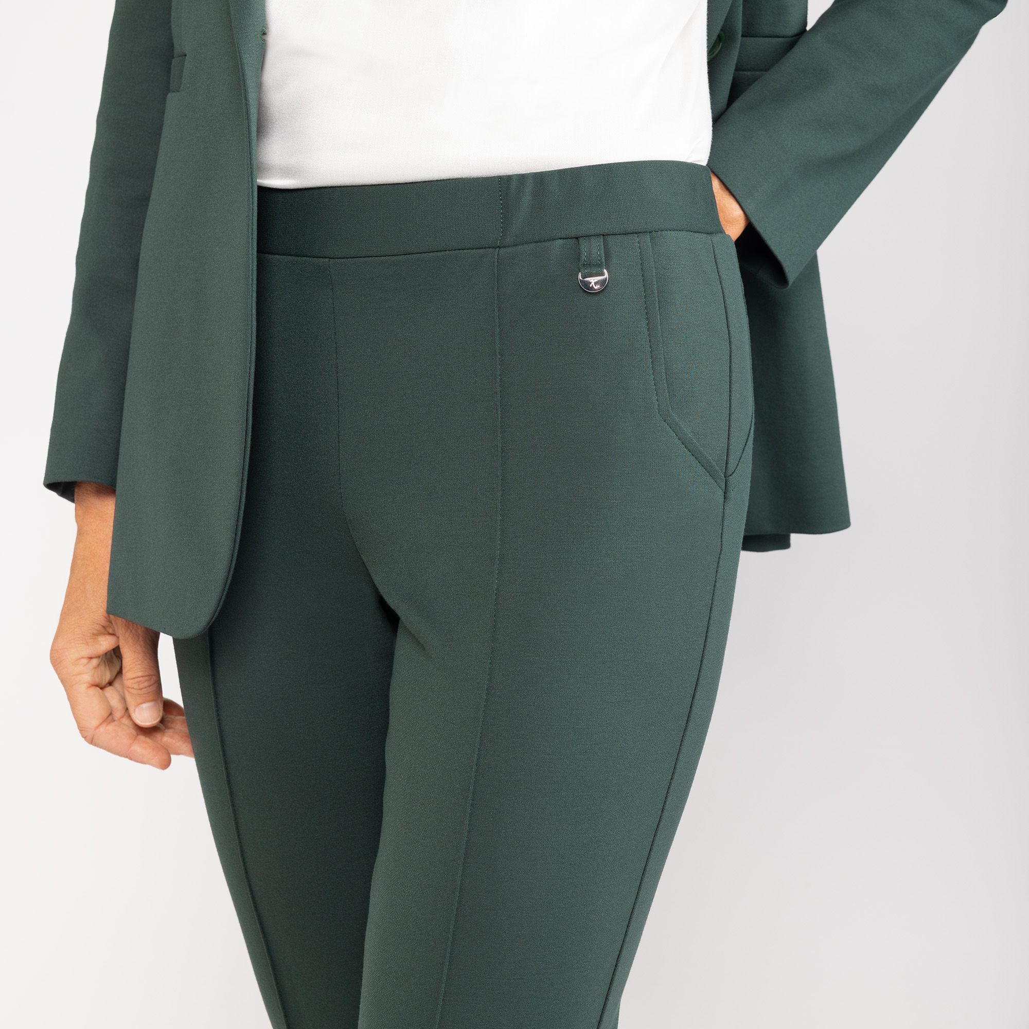 • pantaloni pull on in punto Milano con nervatura frontale