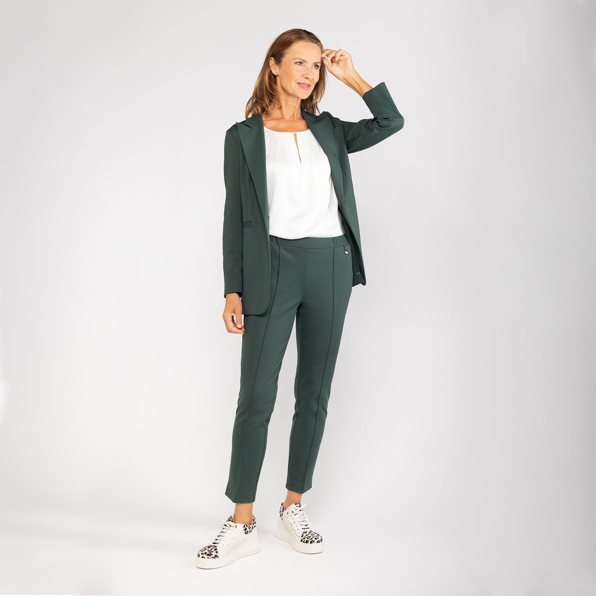 • vestibilità regolare: design a sigaretta, segue delicatamente la silhouette, zona fianchi più asciutta, tessuto elasticizzato