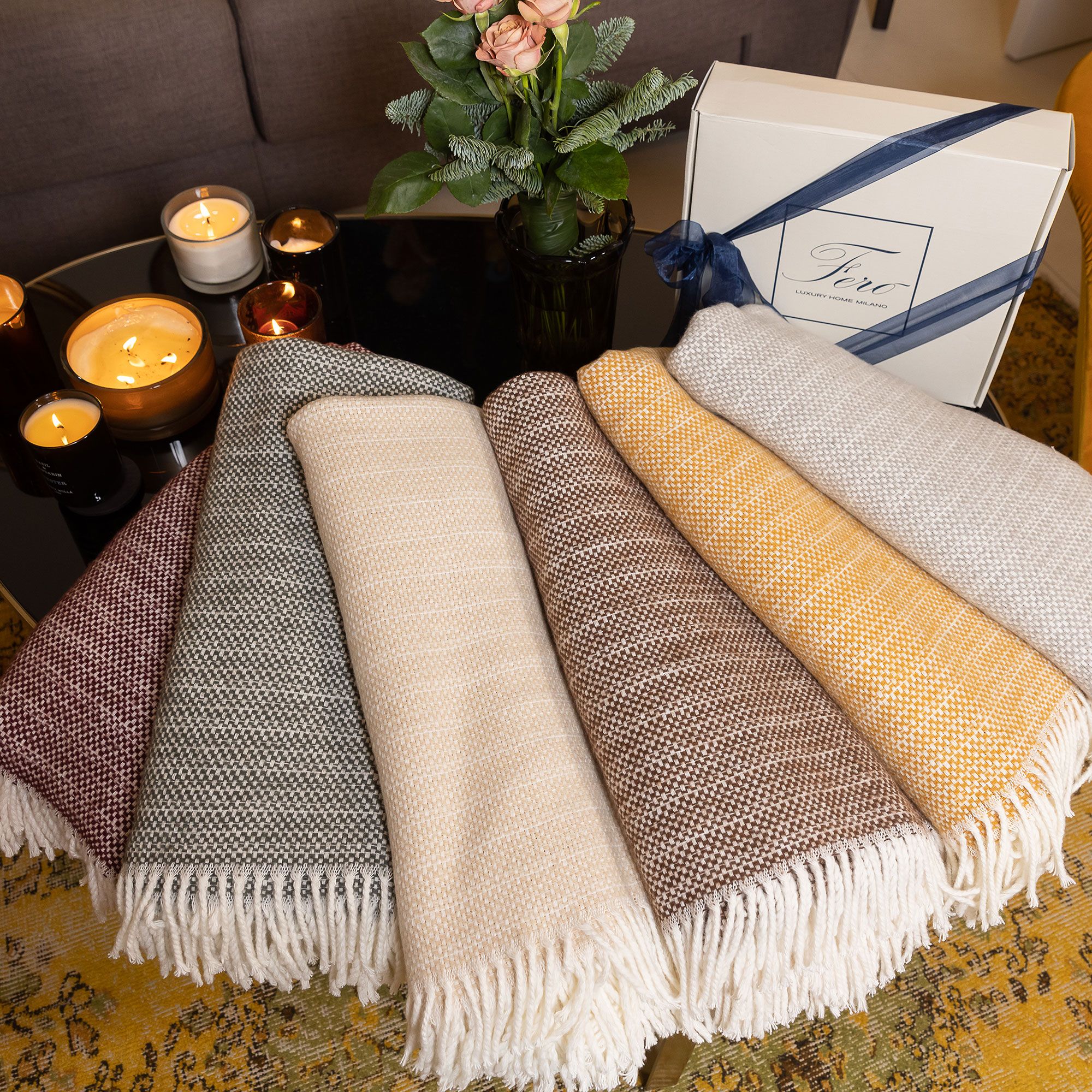 • plaid jacquard Neve tinto in filo 380g/mq, confezionato in scatola regalo