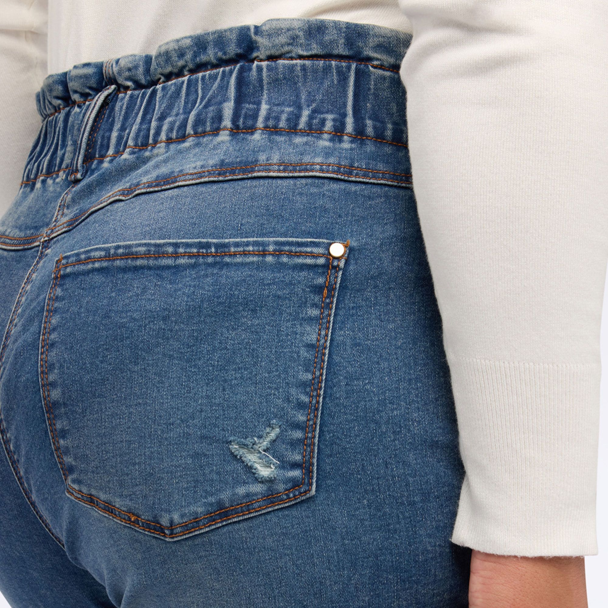• vita medio-alta con bordo elasticizzato arricciato, chiusura con bottoni e zip