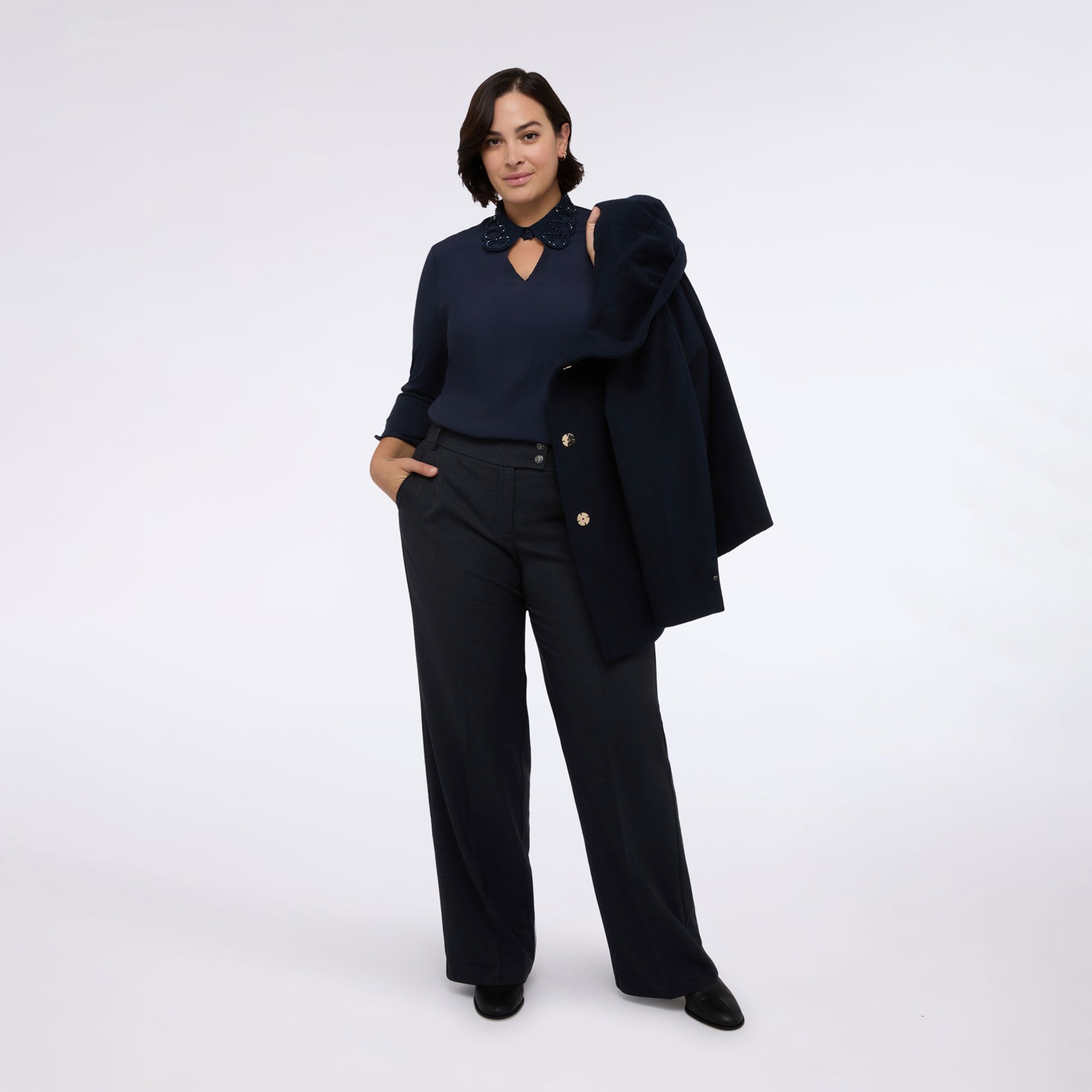 • la gamba ampia e la vita elasticata assicurano comfort per tutto il giorno