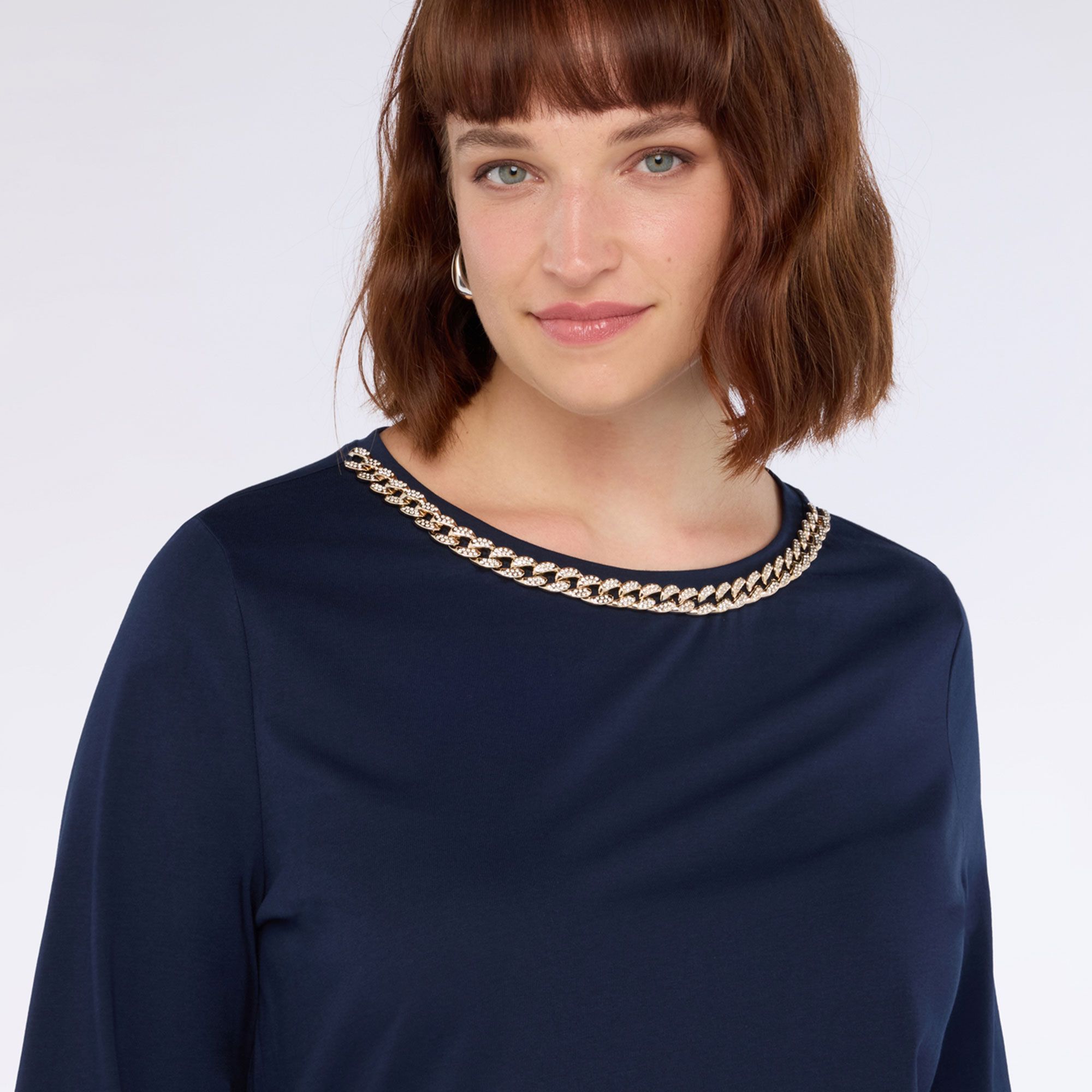 • il dettaglio gioiello sullo scollo aggiunge un tocco raffinato e luminoso ai tuoi outfit