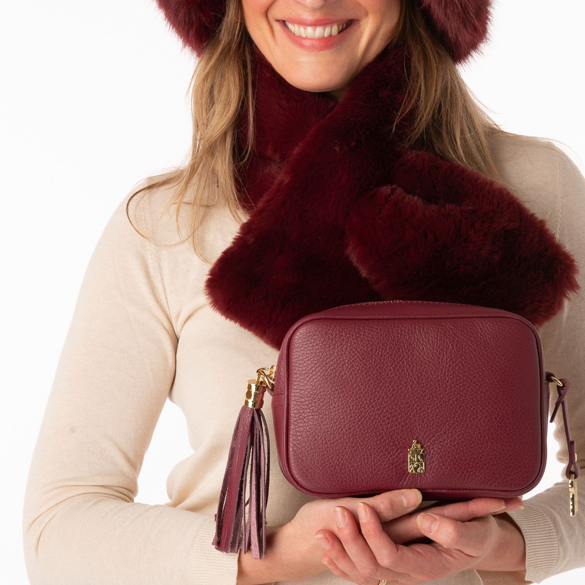 • chiusura superiore centrale con zip decorata da nappina