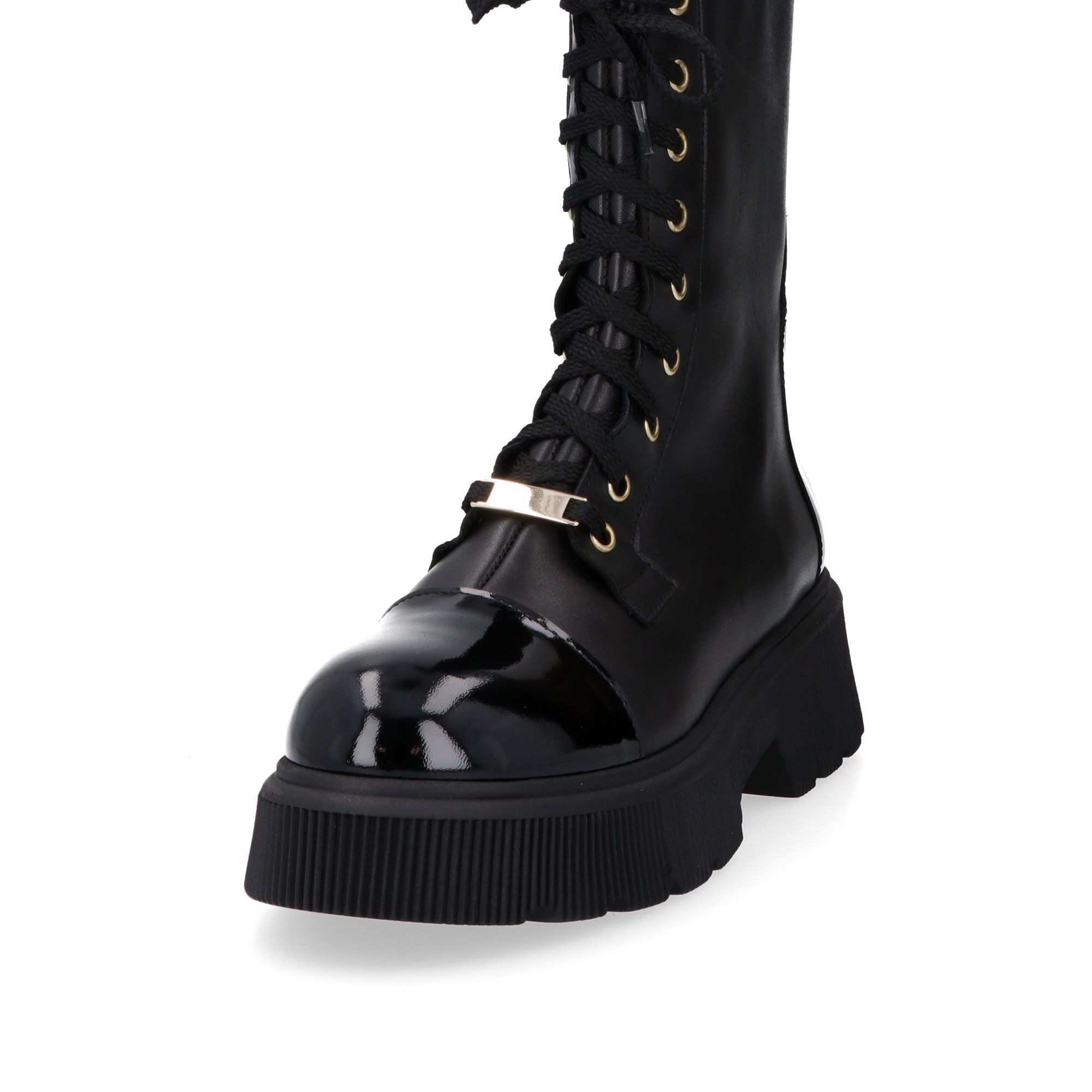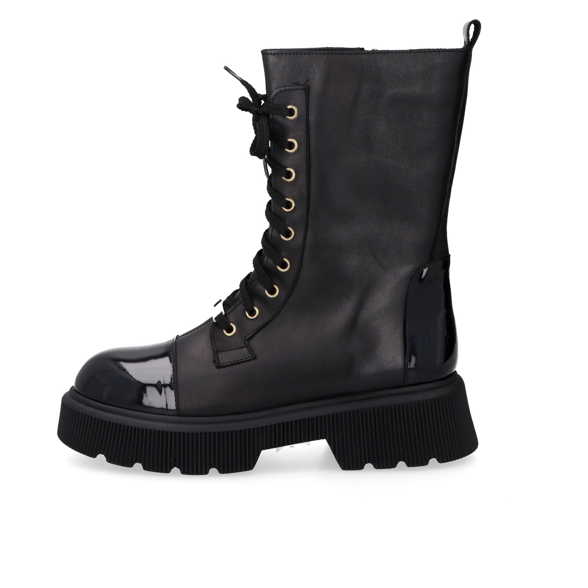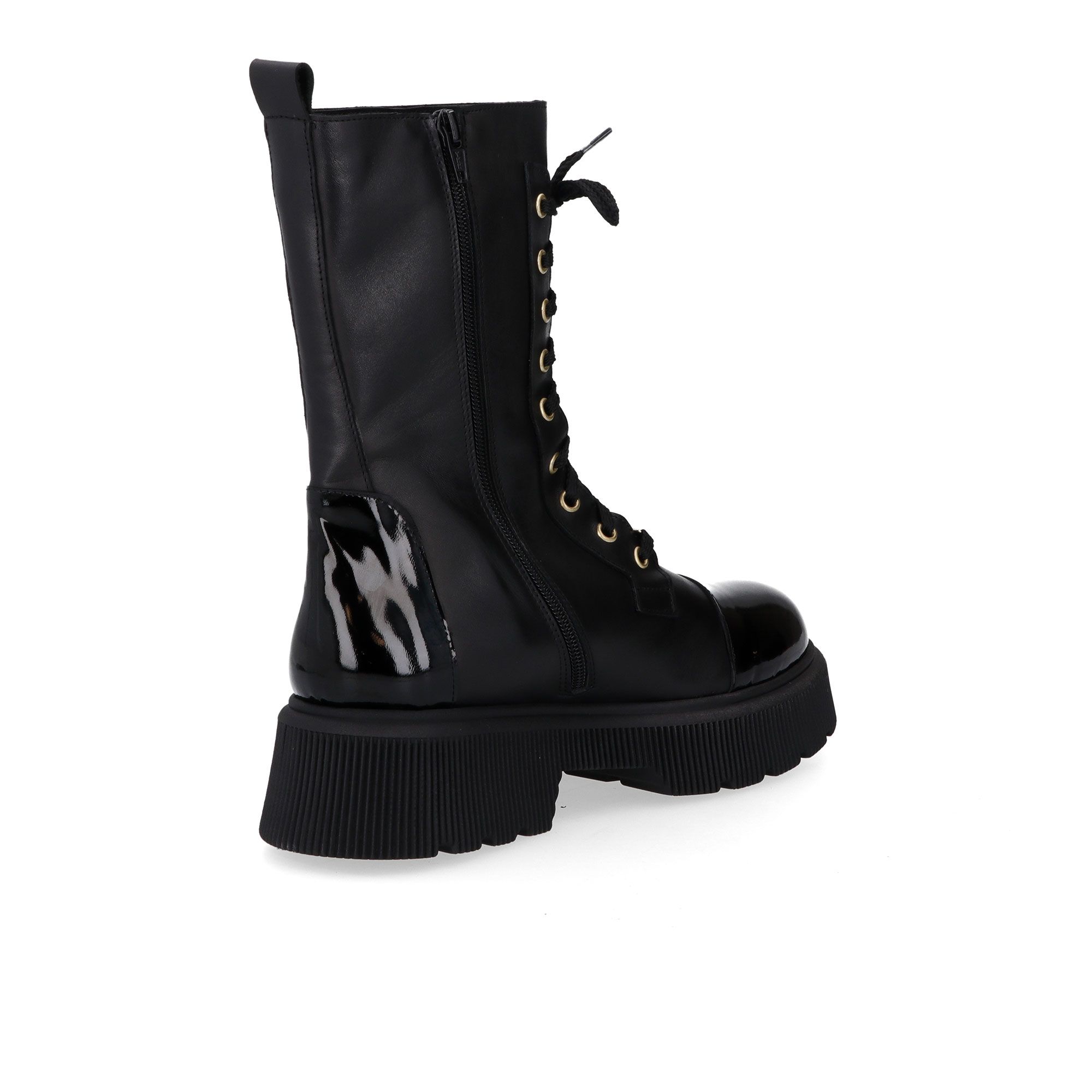 • biker stringati in pelle con inserti in pelle verniciata