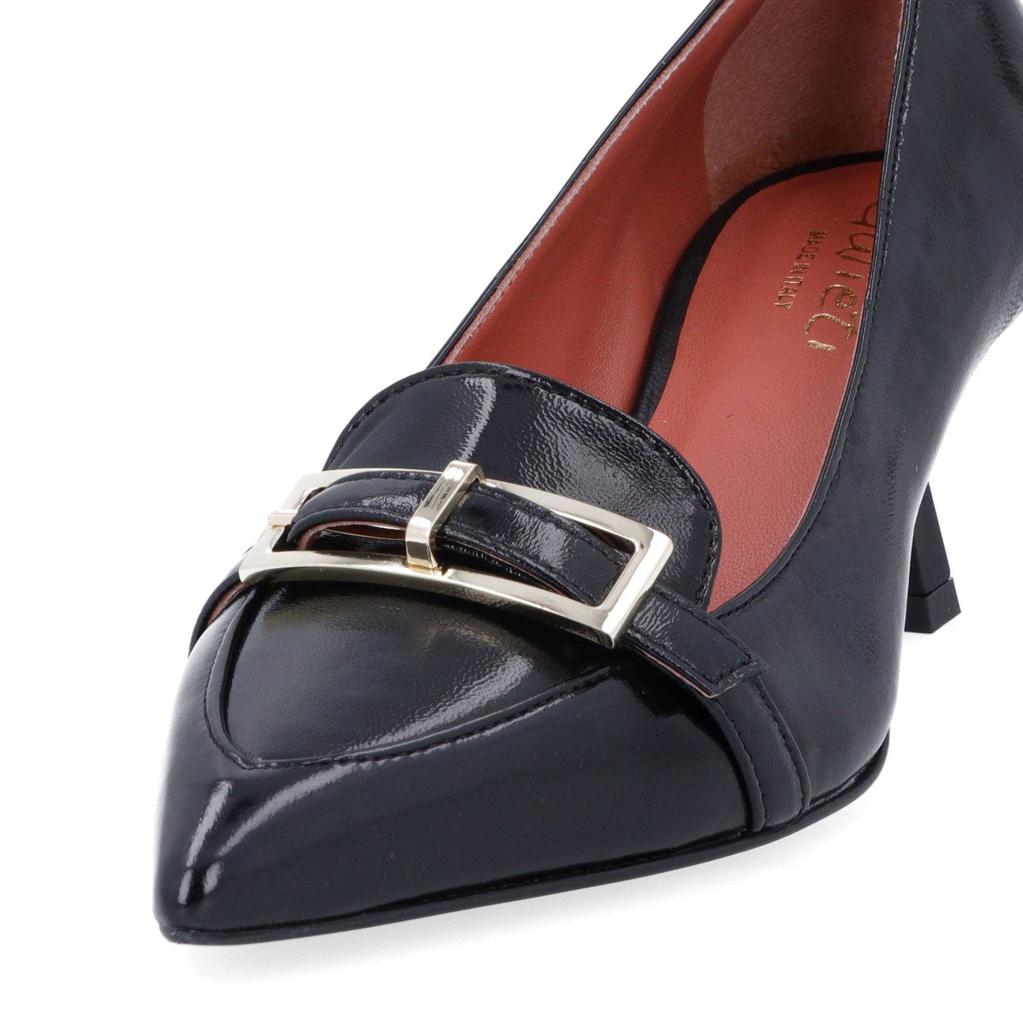 • décolleté in pelle con fibbia decorativa e tacco 5,5 cm