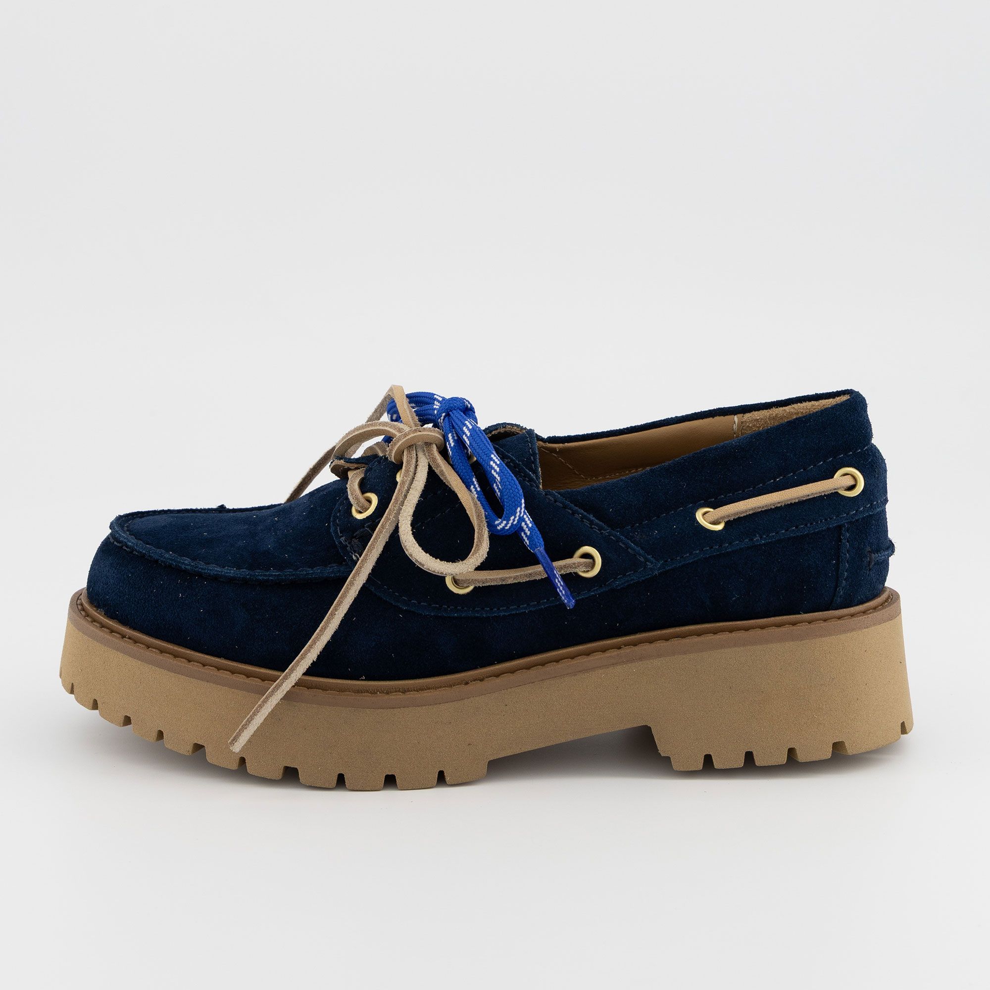 • mocassini stringati in pelle scamosciata, modello tipo barca