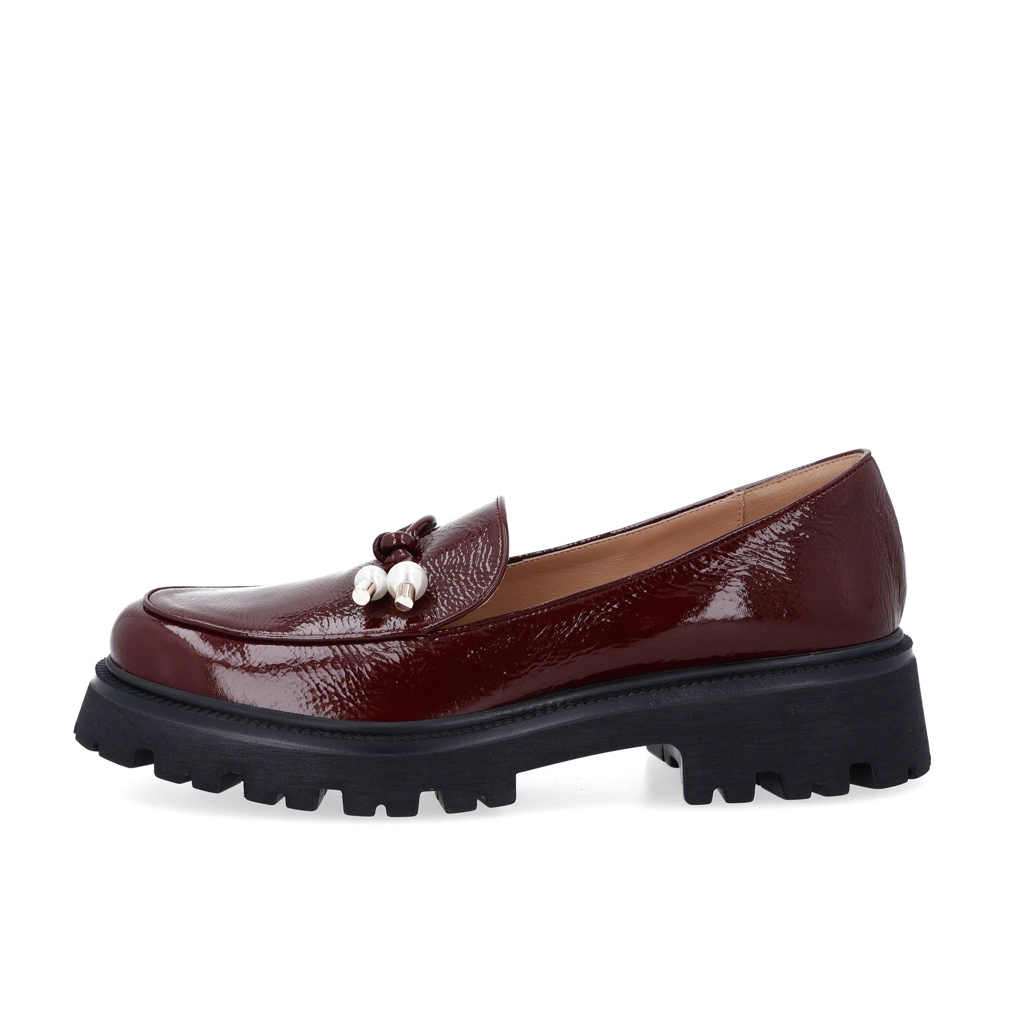 • mocassini in pelle verniciata con effetto leggermente increspato