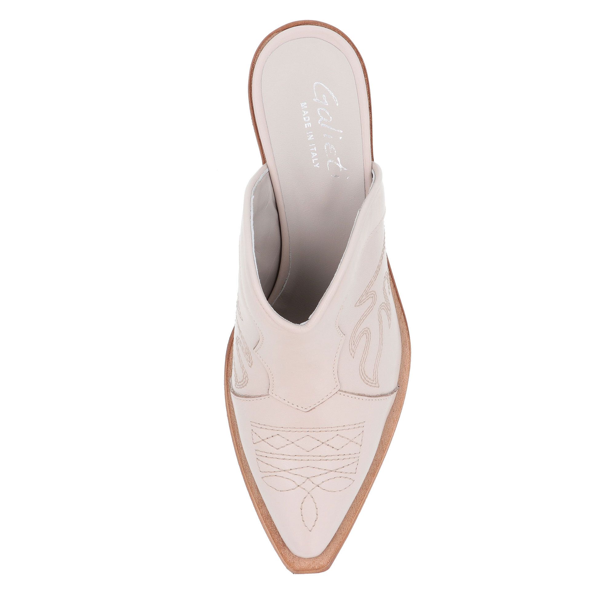 • sabot in pelle con delicato ricamo texano sulla tomaia