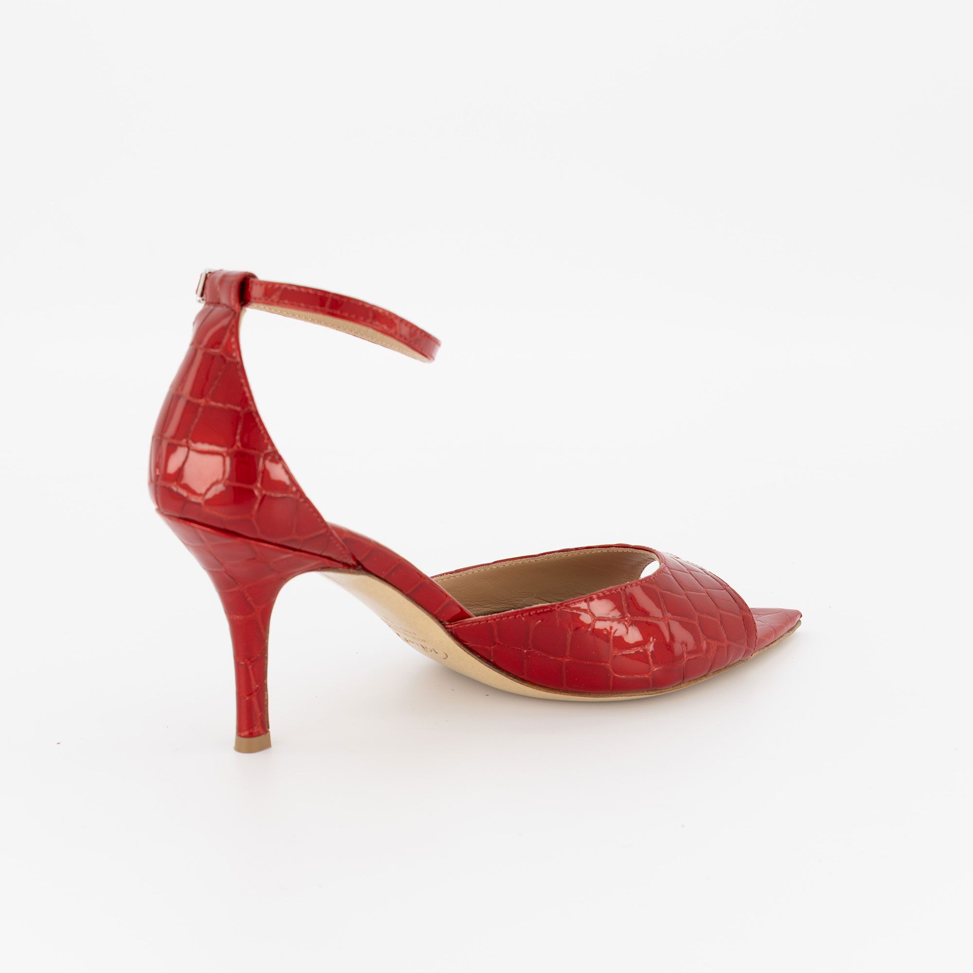 Questi sandali uniscono eleganza e carattere grazie alla pelle stampa cocco e al tacco rivestito, perfetti per completare look raffinati sia di giorno che di sera.