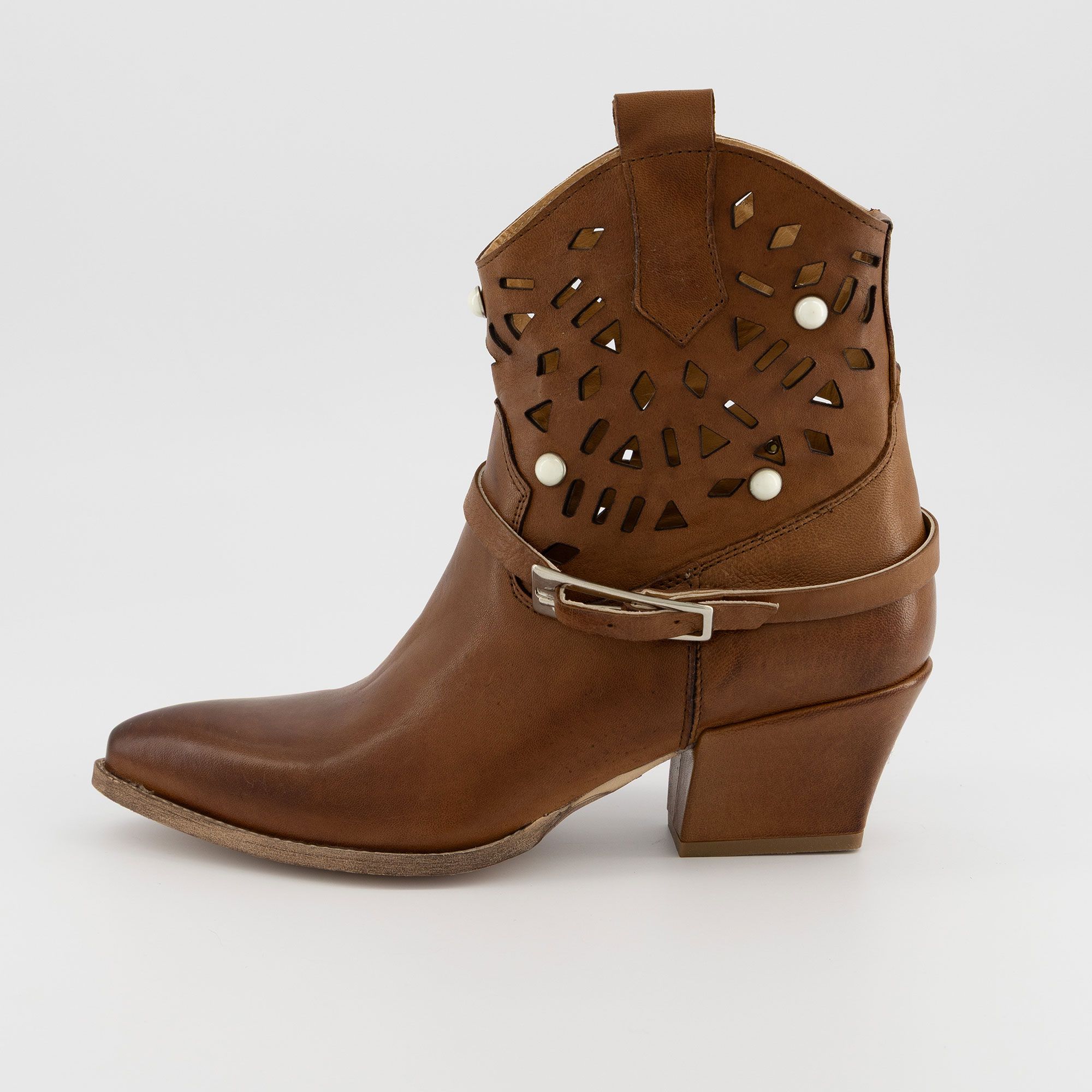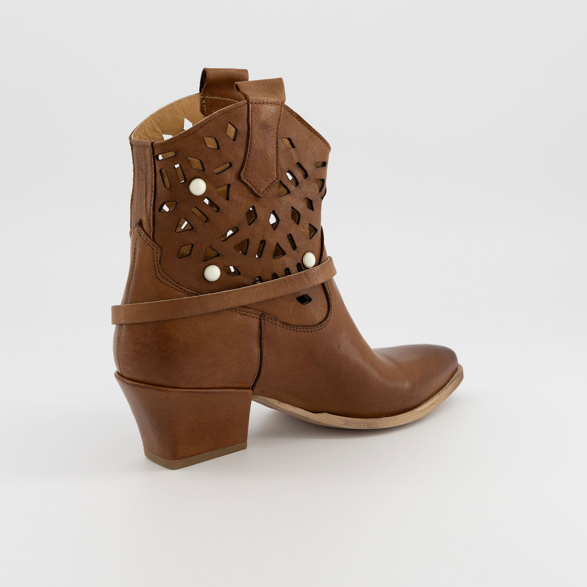 Questi stivaletti texani uniscono il fascino artigianale del laserato alle perle decorative, perfetti per dare carattere ai tuoi look quotidiani e agli outfit più ricercati.