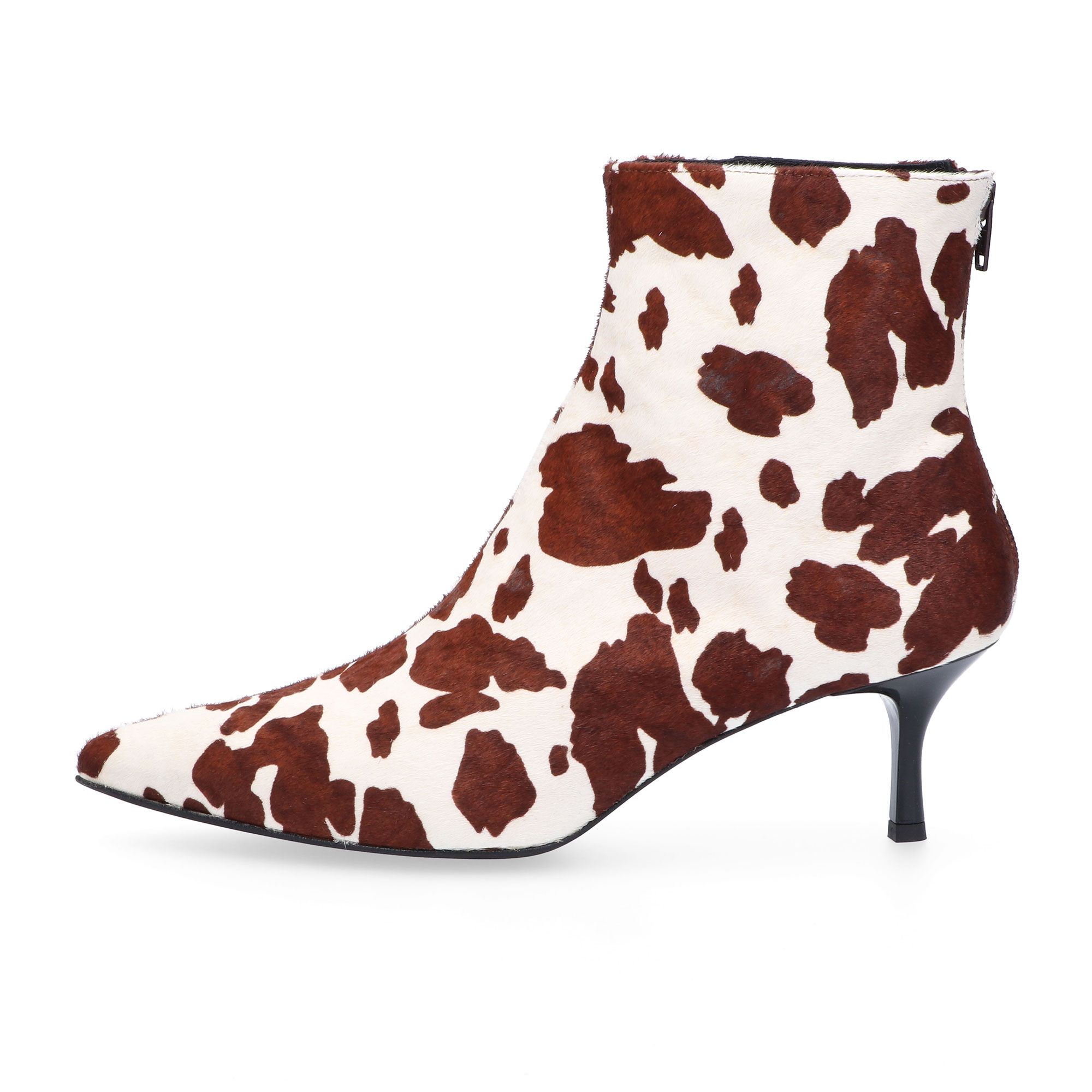 • stivaletti sfilati in pelle cavallino stampa dalmata bianco/nero o mucca bianco/marrone