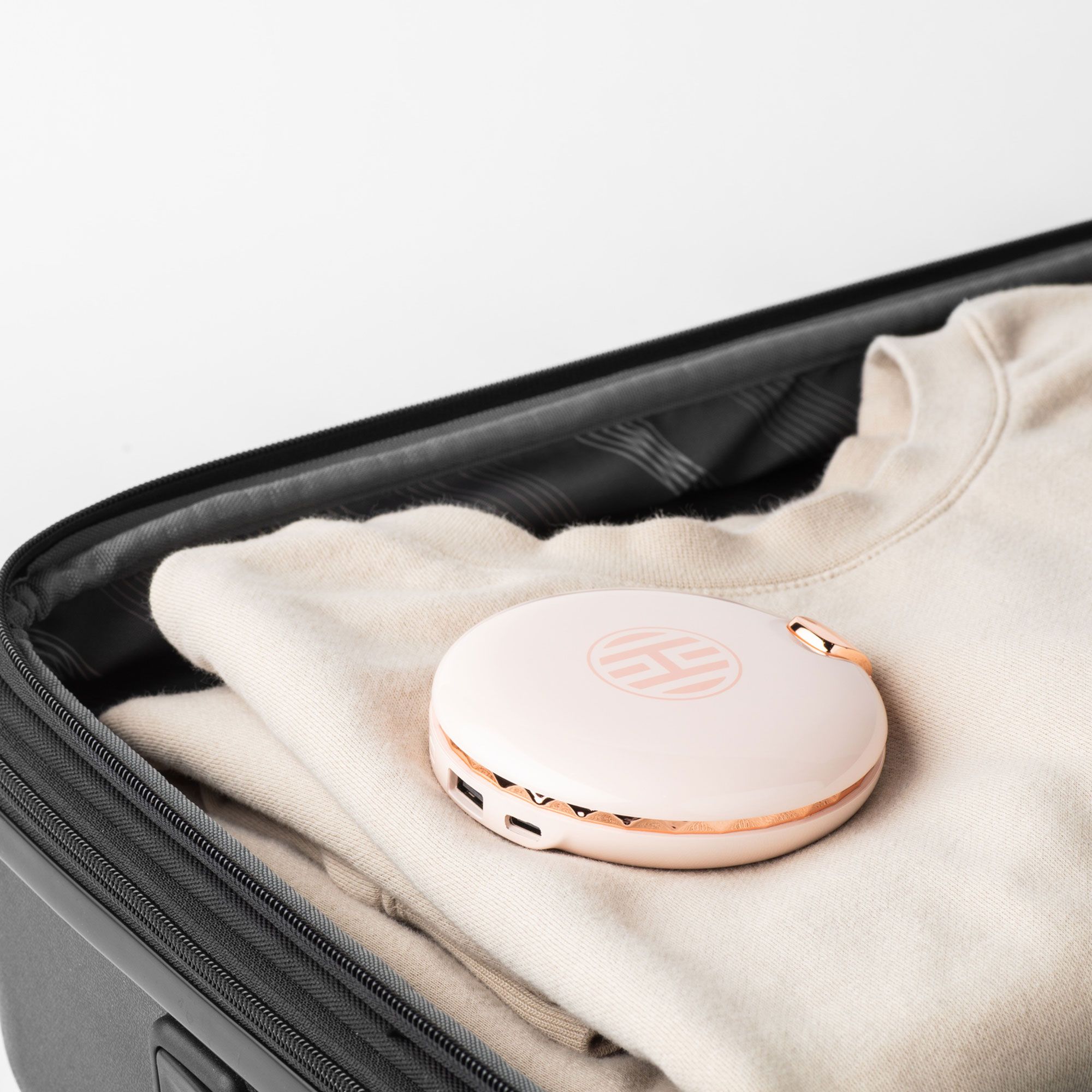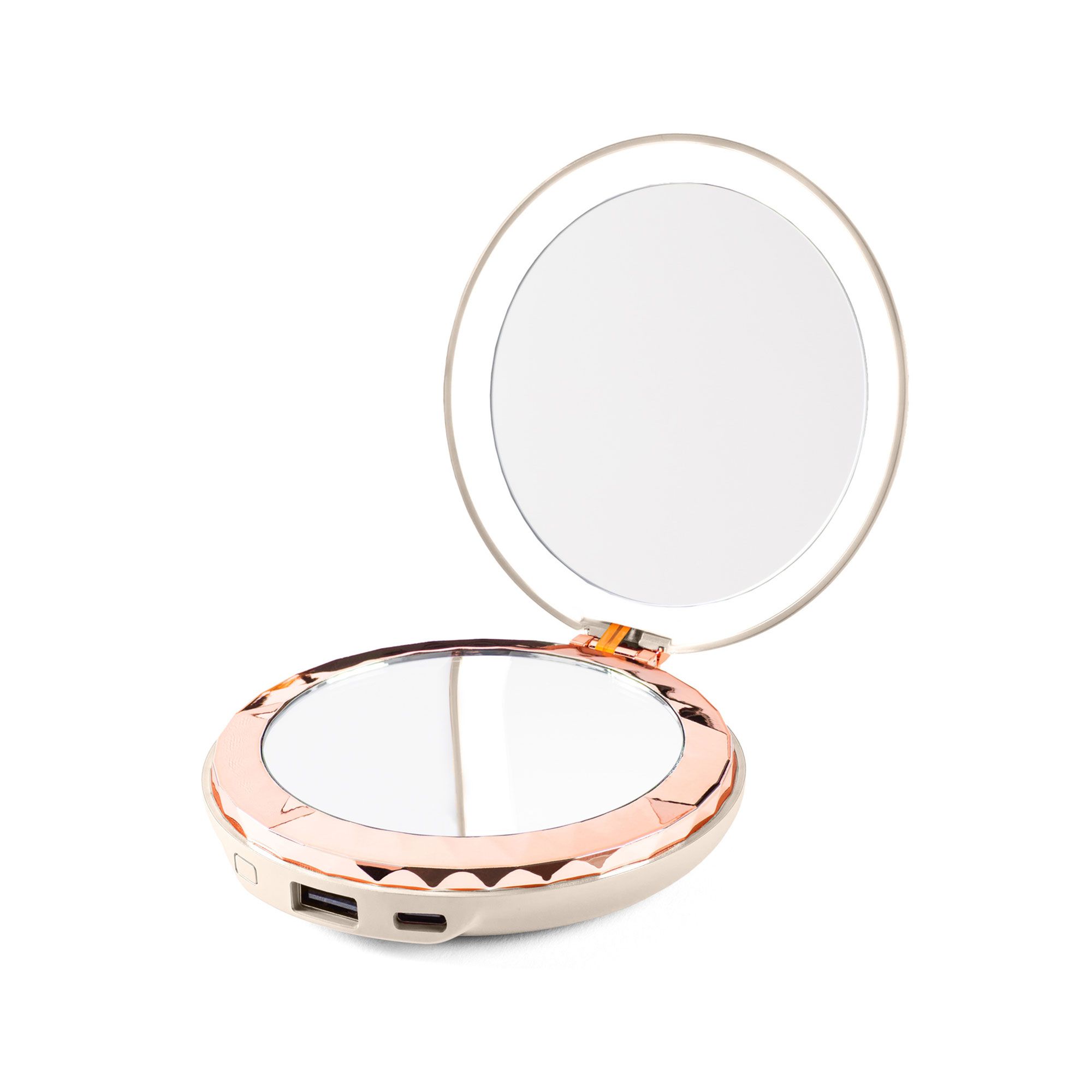 • un alleato compatto che racchiude specchio, luce LED e power bank: perfetto per ogni occasione