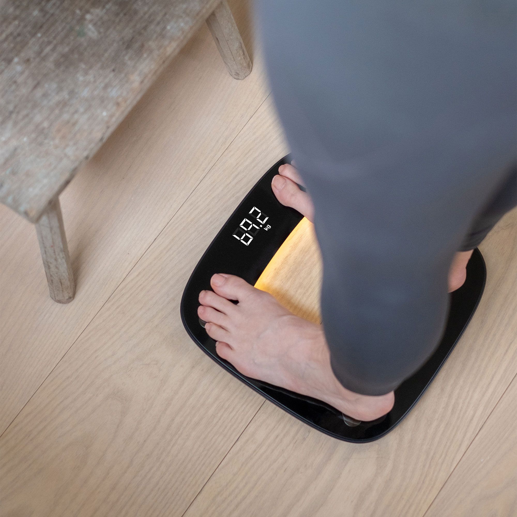 • la bilancia HoMedics glo™ Body Analyser ti aiuta a monitorare 13 parametri corporei essenziali per seguire i tuoi progressi di benessere