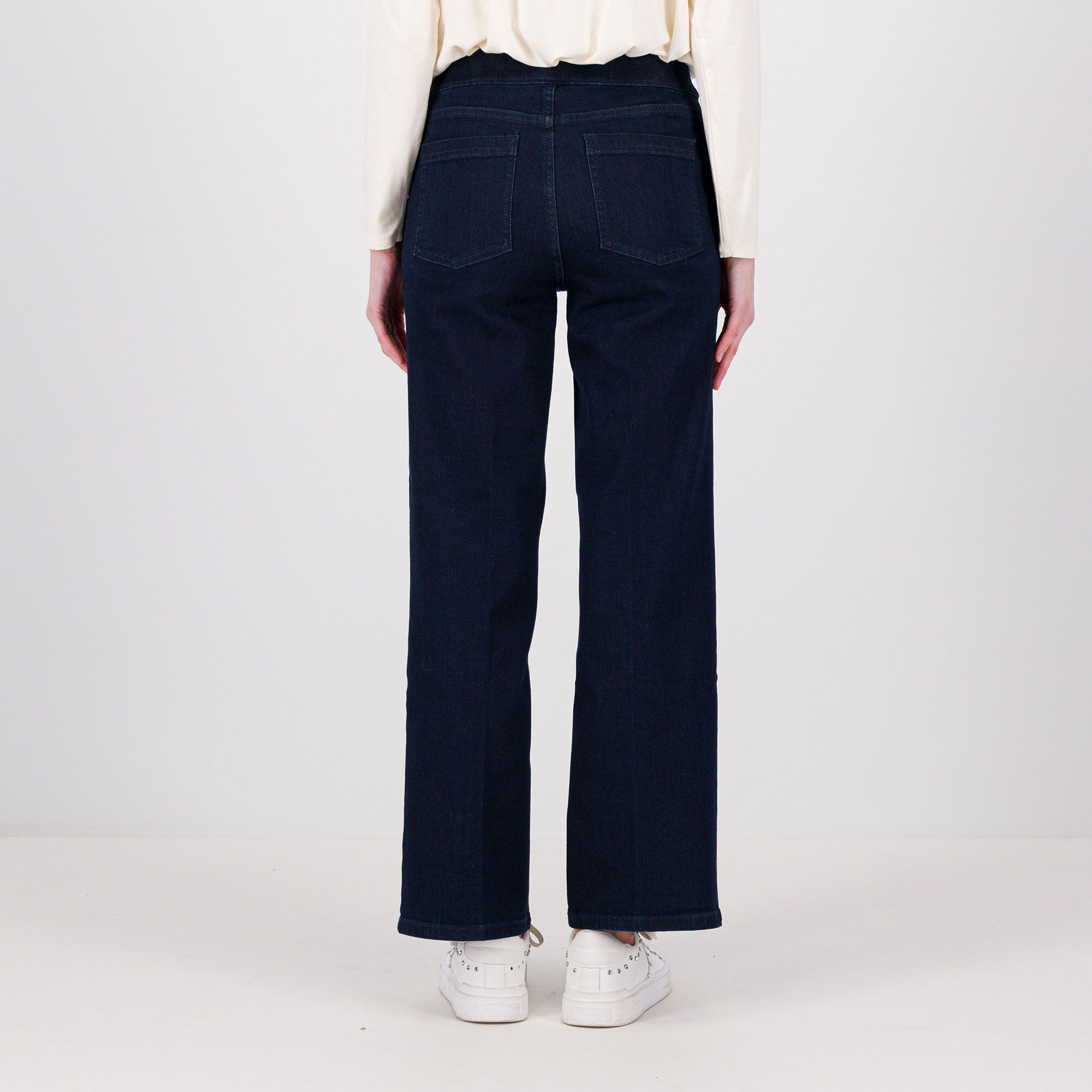• jeans a gamba larga motivo di piega davanti