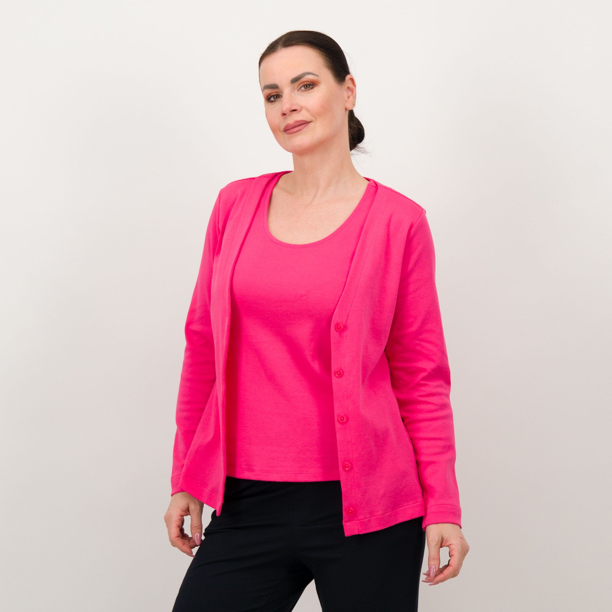 • lunghezza totale rispetto alla taglia M: cardigan 66 cm, canottiera 63 cm