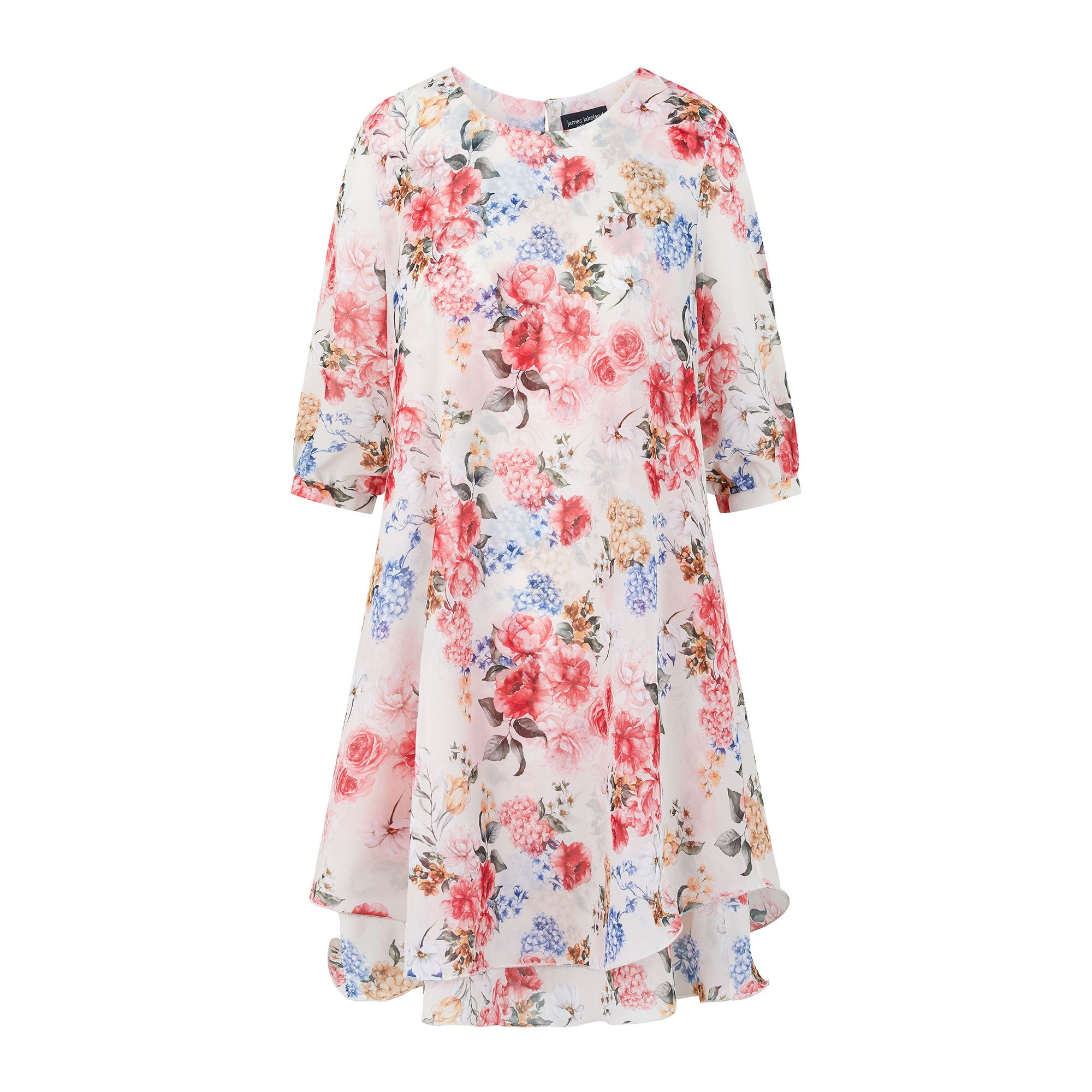 • la fantasia in chiffon aggiunge leggerezza e raffinatezza al look
