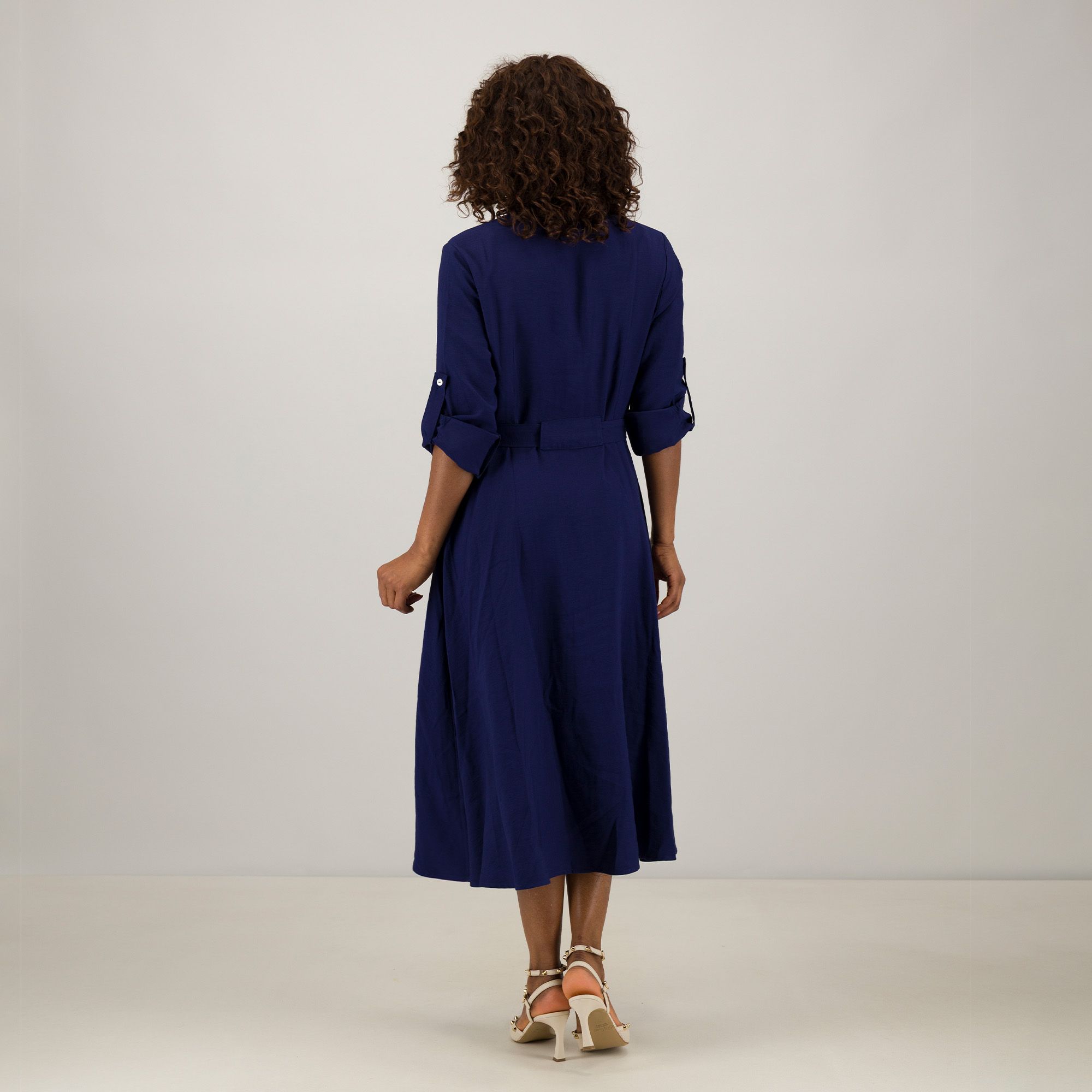 • il collo alla coreana e la cintura in vita valorizzano la silhouette con eleganza