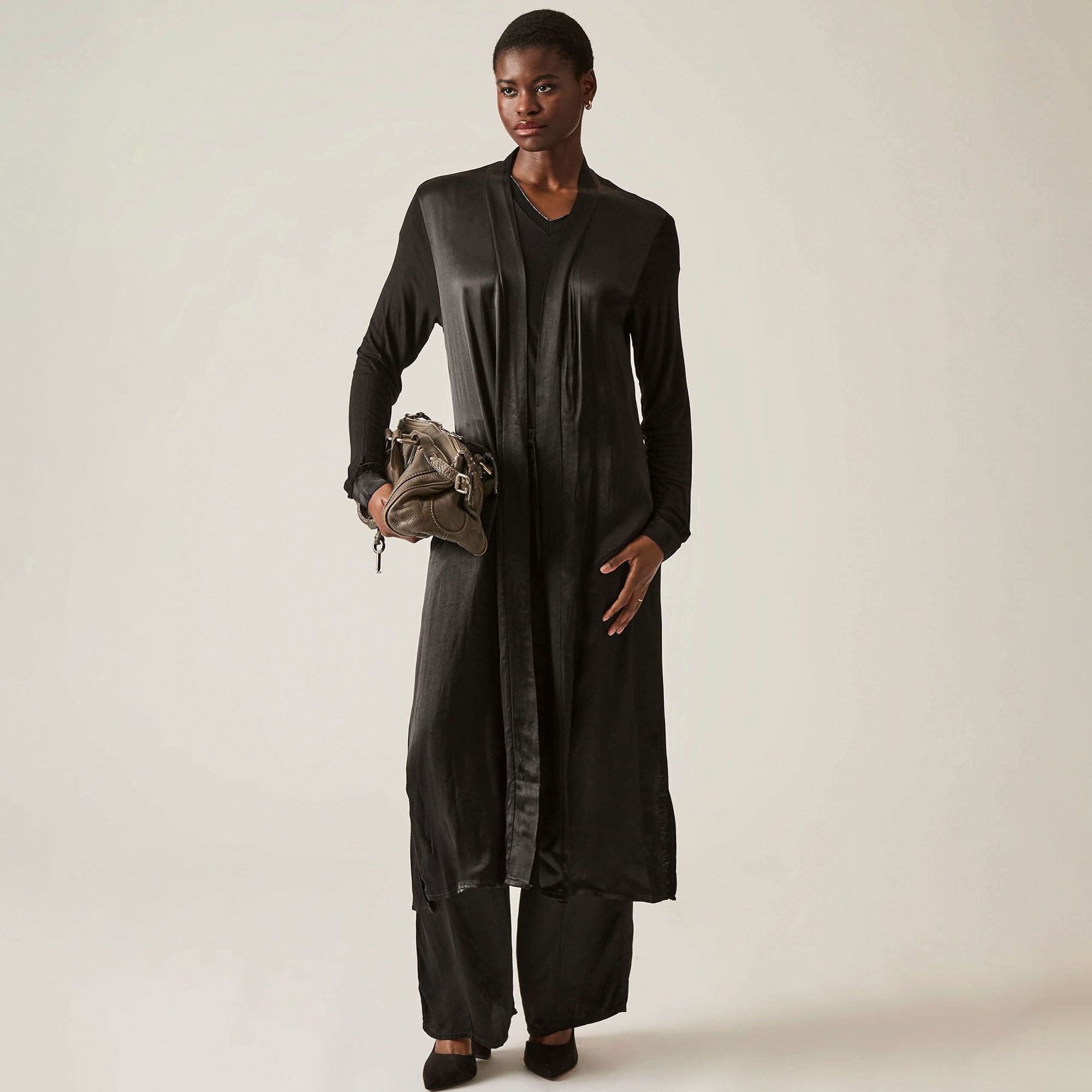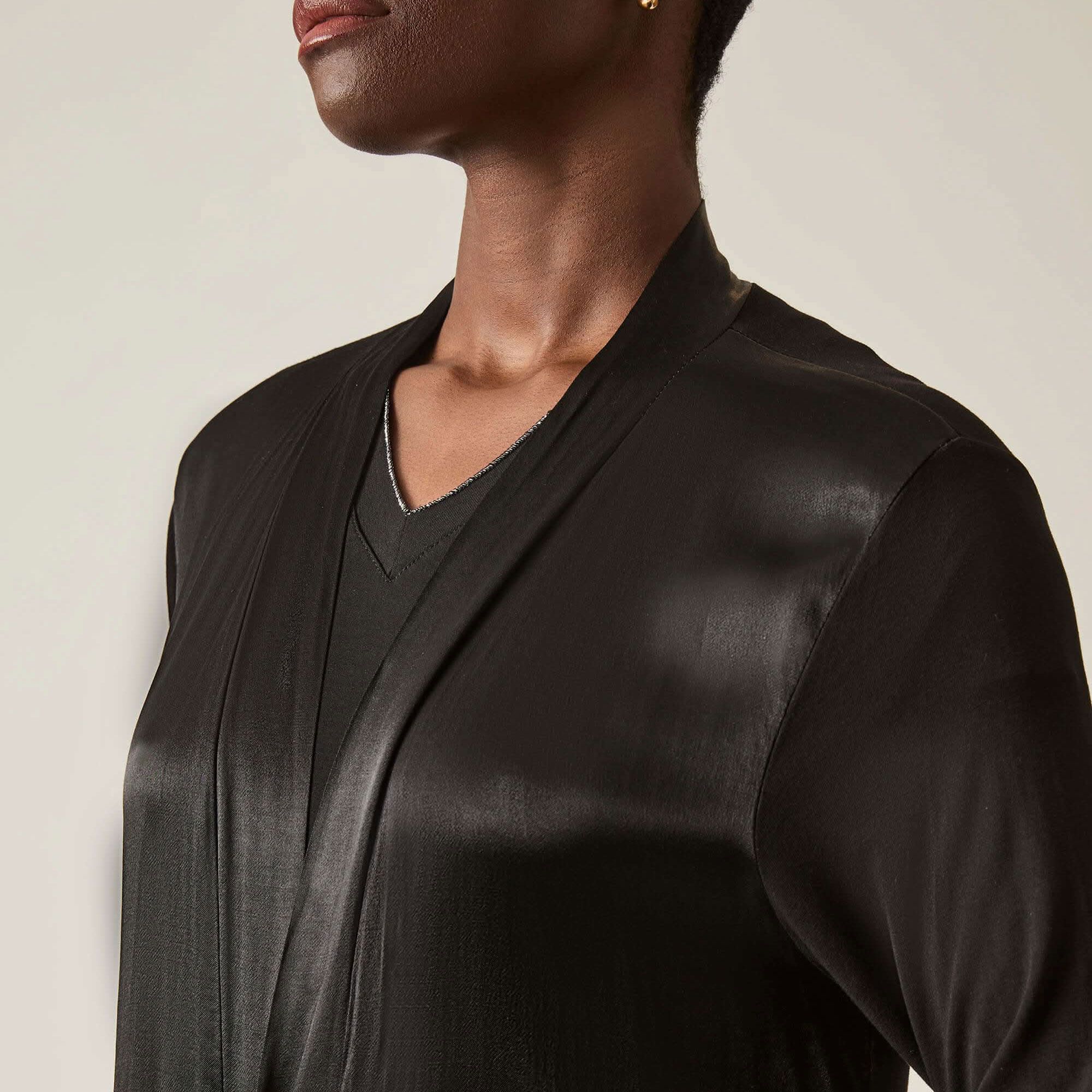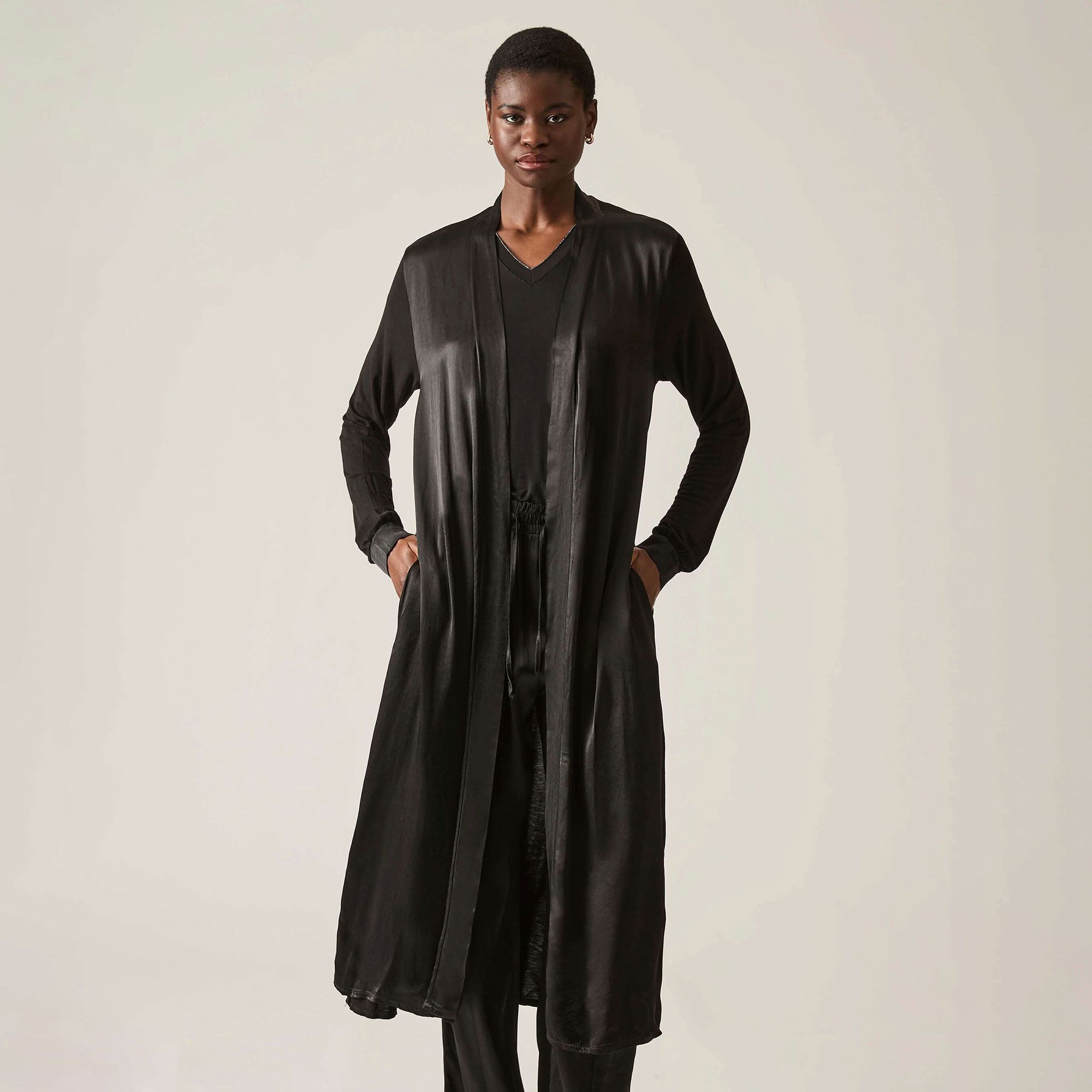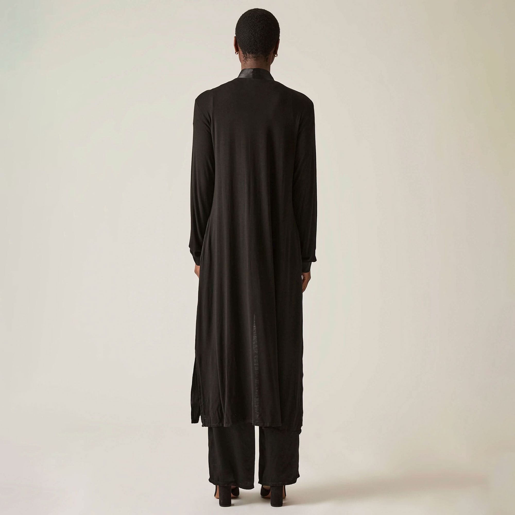 • cardigan lungo con collo e parte frontale in raso di viscosa tinta unita