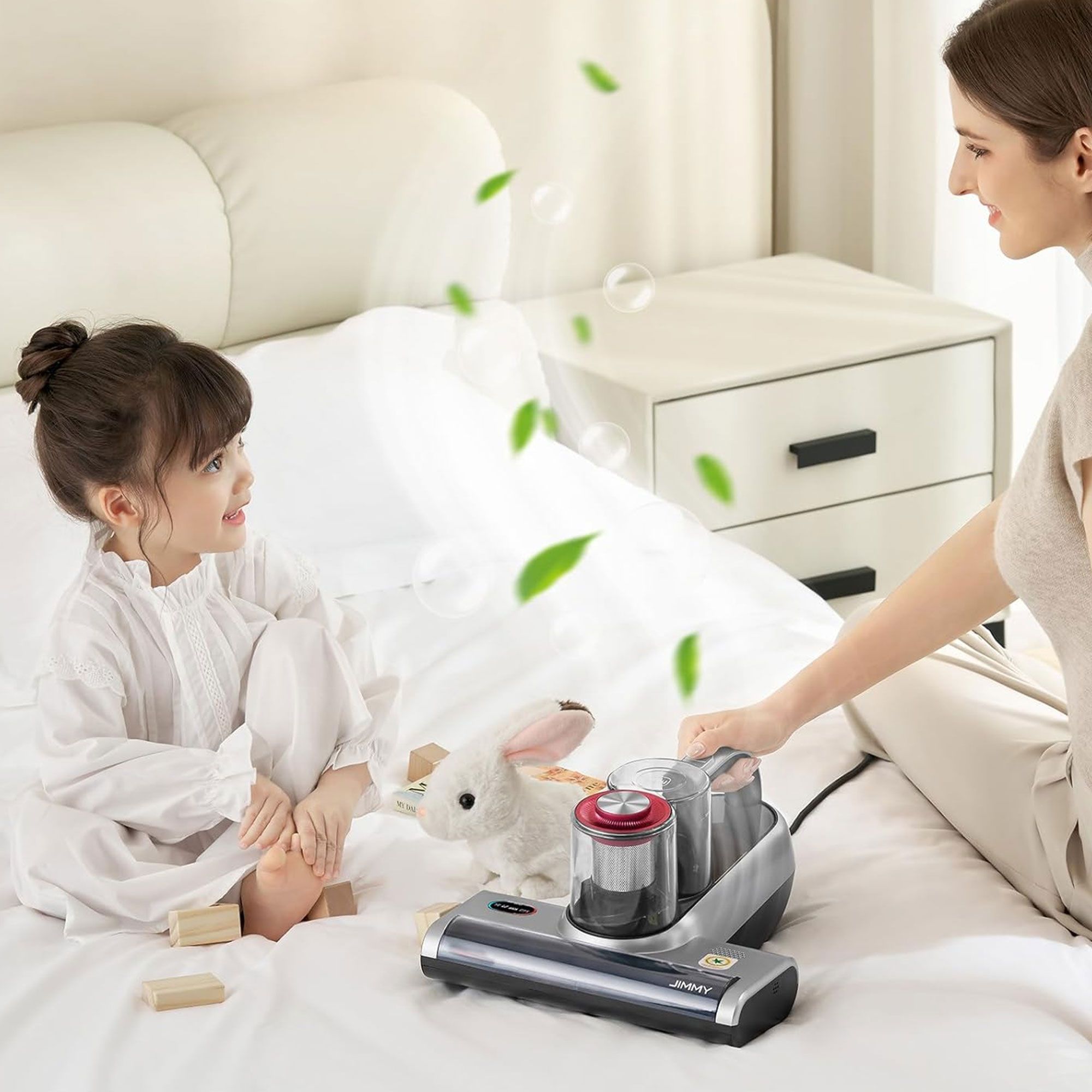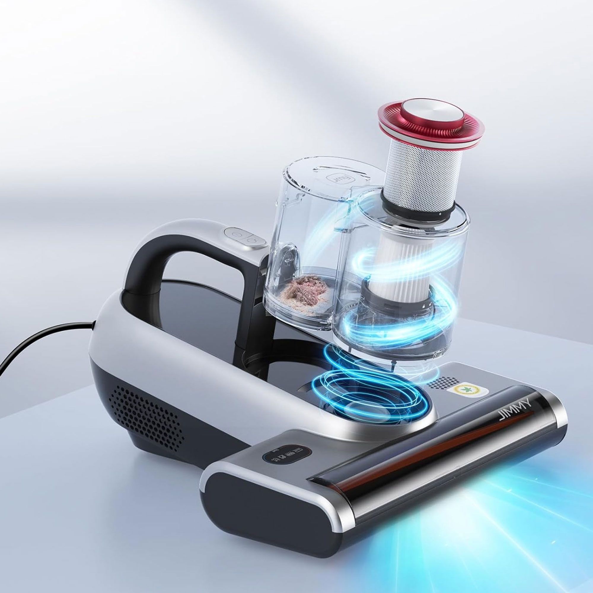 • JIMMY BX6 Pro ti aiuta a eliminare acari e allergeni grazie alla combinazione di aspirazione, luce UV e ultrasuoni