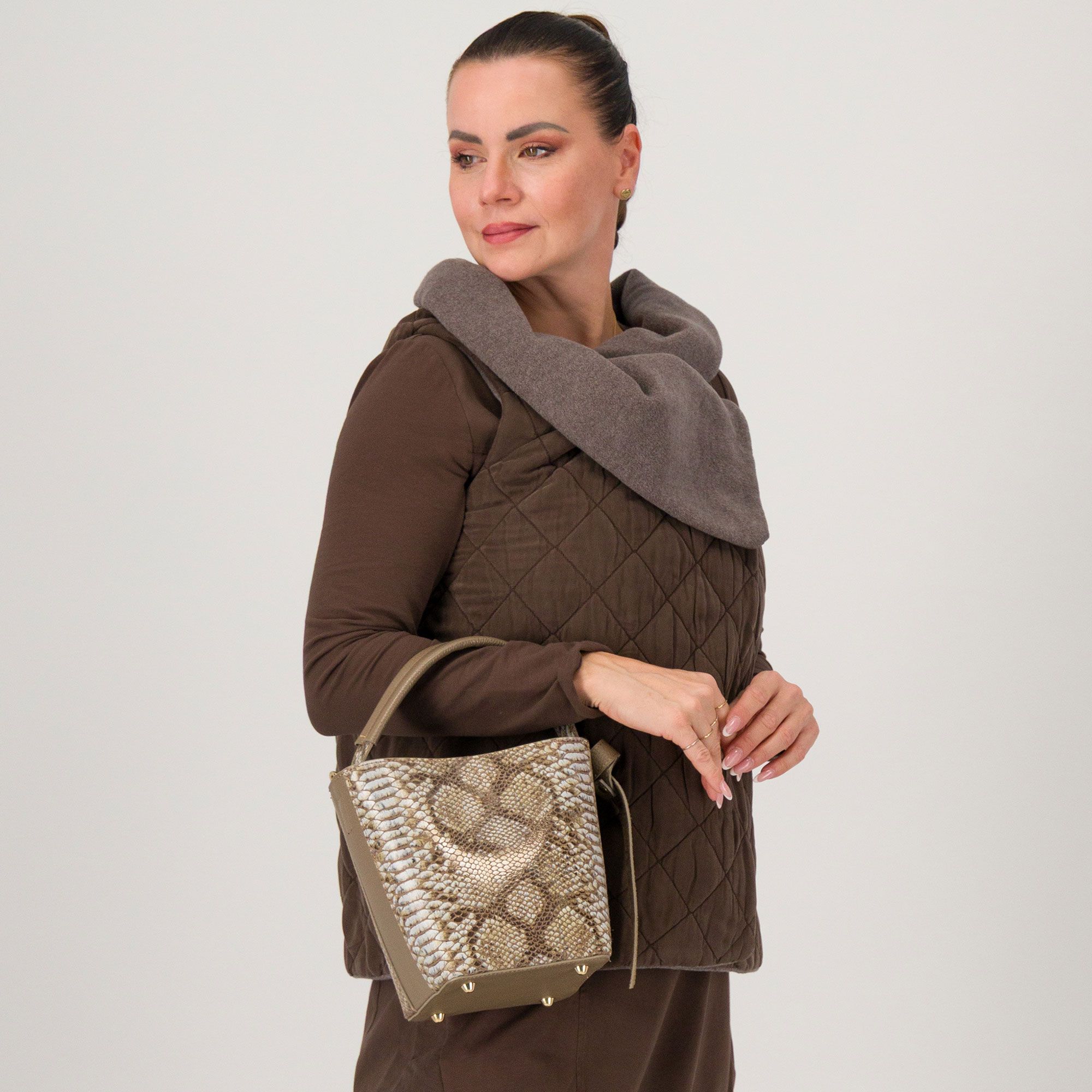 Elegante e versatile, questa borsa a secchiello con pochette coordinata è perfetta per aggiungere un tocco di stile deciso ai tuoi outfit sia quotidiani che per occasioni speciali.