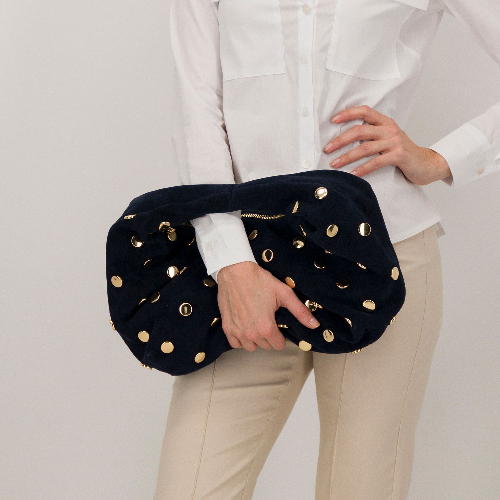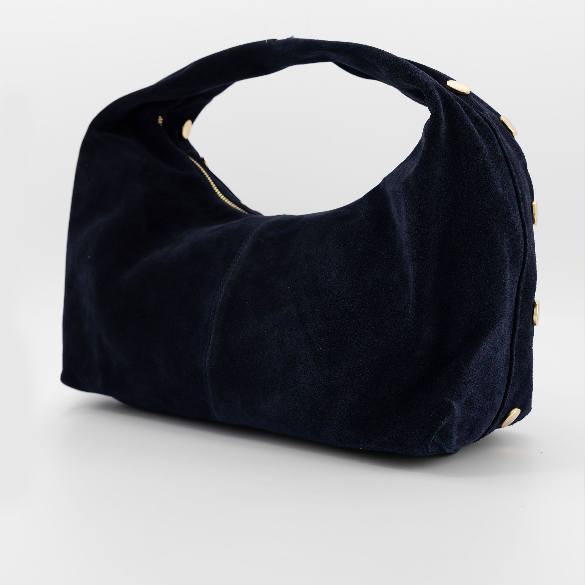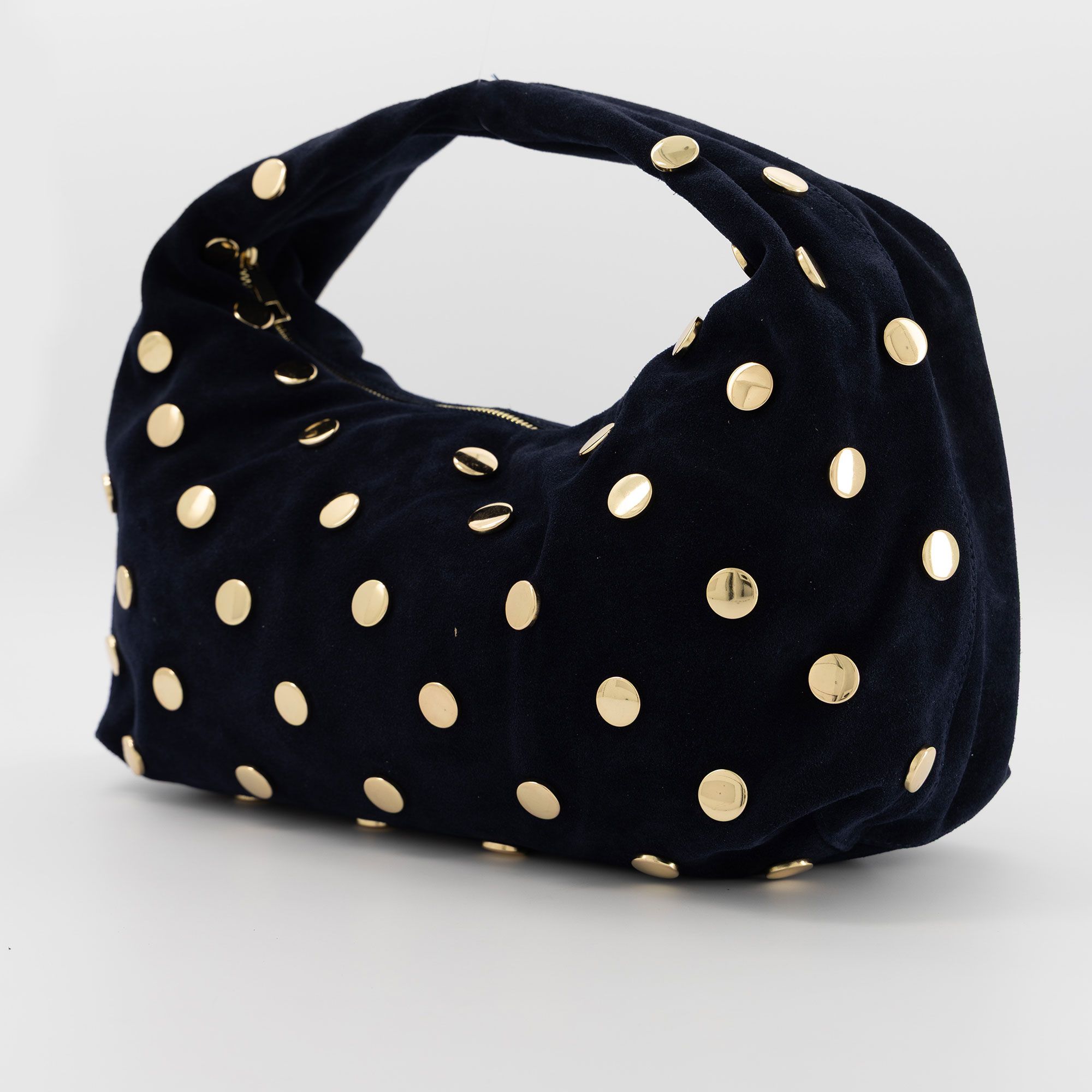 Il design grintoso delle borchie e la morbidezza della pelle scamosciata rendono questa borsa perfetta per dare carattere ai tuoi look quotidiani e serali.