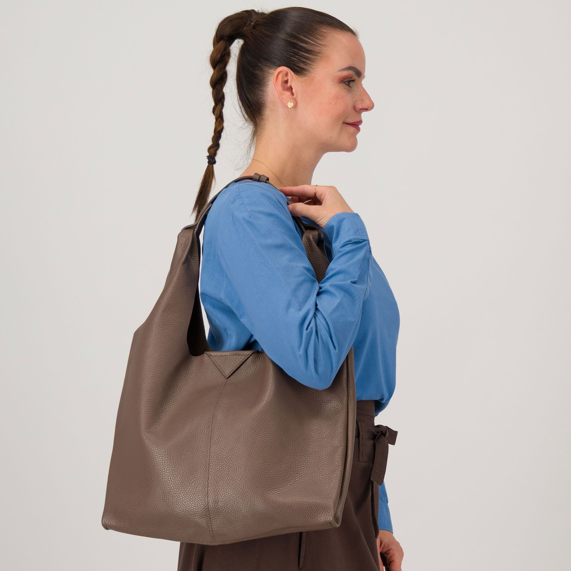 Elegante e capiente, questa borsa in pelle con pochette coordinata è perfetta per completare look sofisticati e accompagnarti con stile nelle tue giornate.