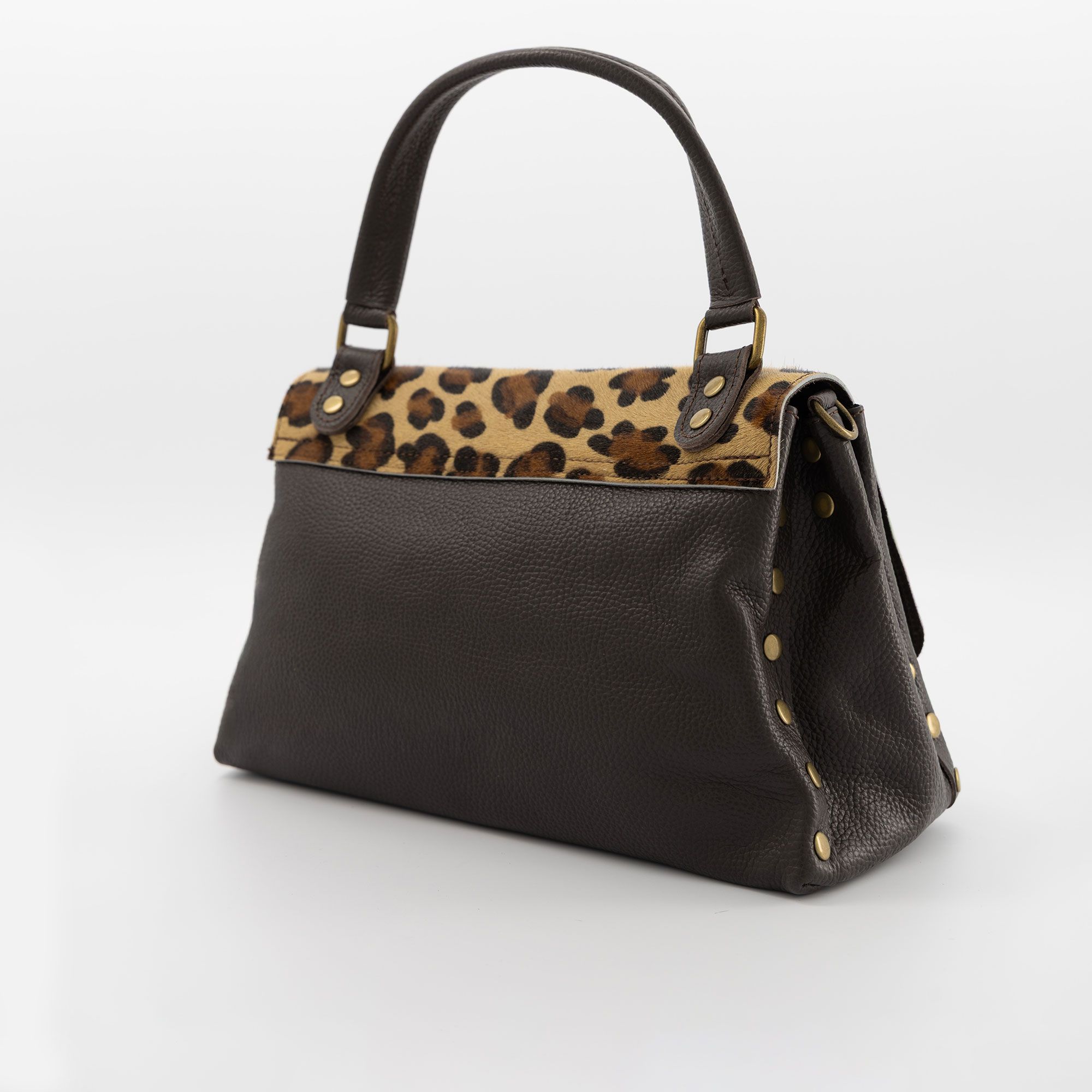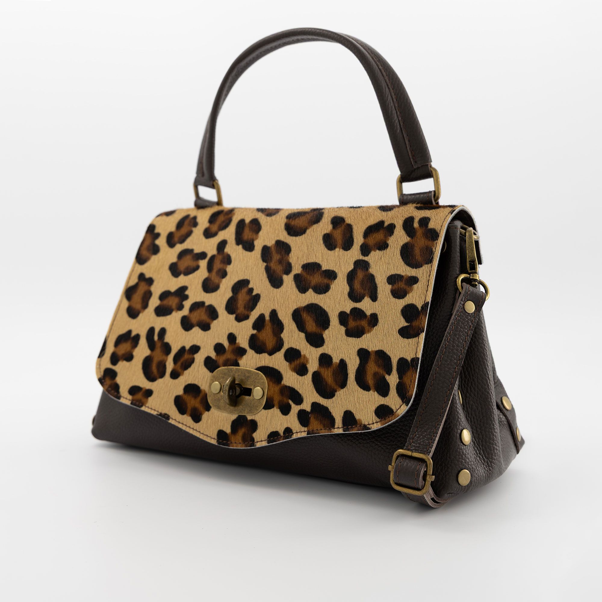 • borsa a spalla Zany Pony in pelle martellata con patta in cavallino