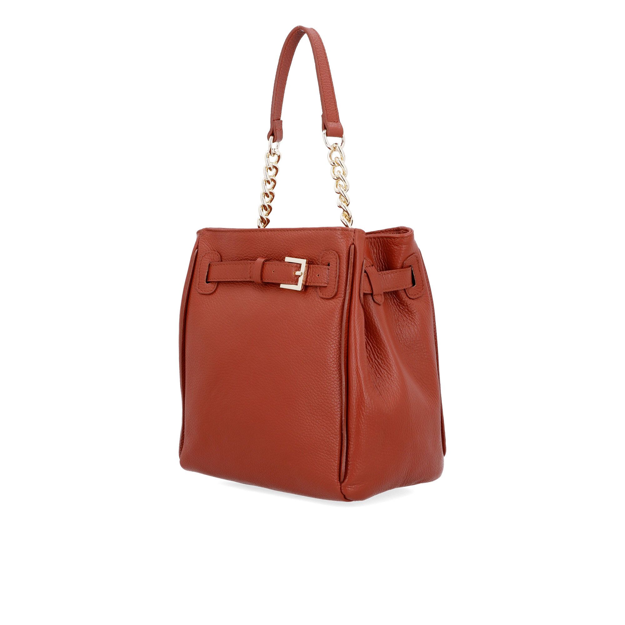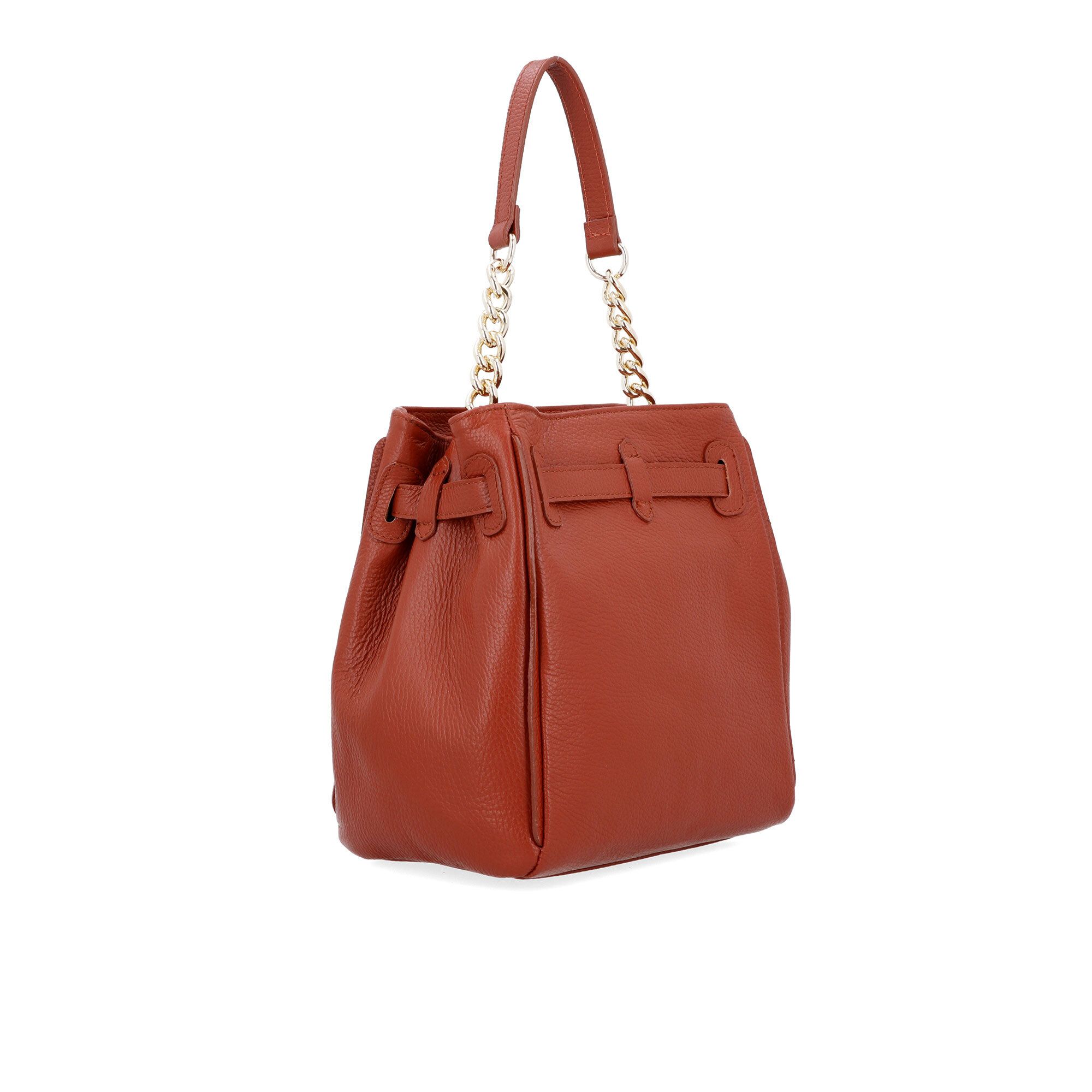 • borsa a spalla "Asia" in pelle dollaro, forma a secchiello squadrato