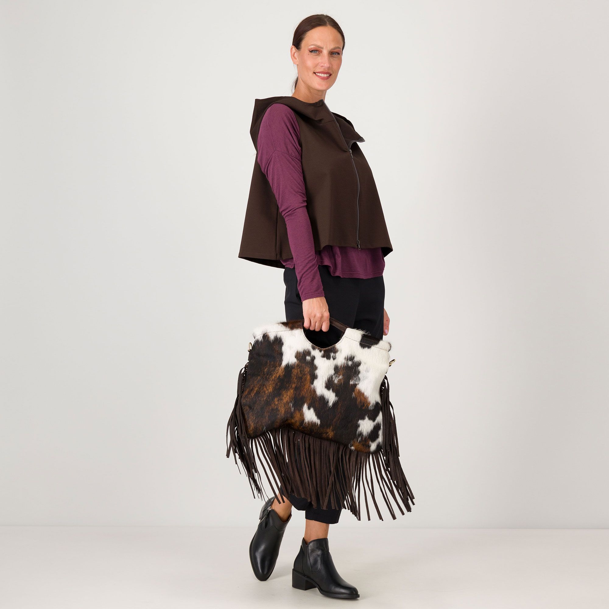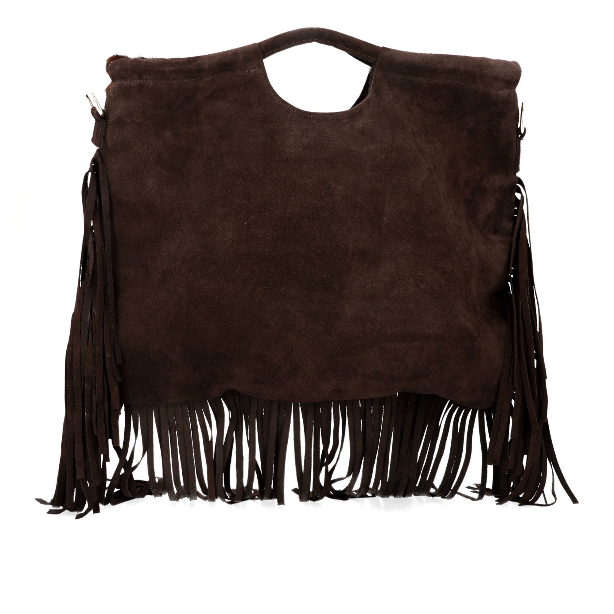 Il mix di cavallino e pelle scamosciata, unito alle frange, dona carattere e originalità ai tuoi look quotidiani. Perfetta per chi ama distinguersi con stile.