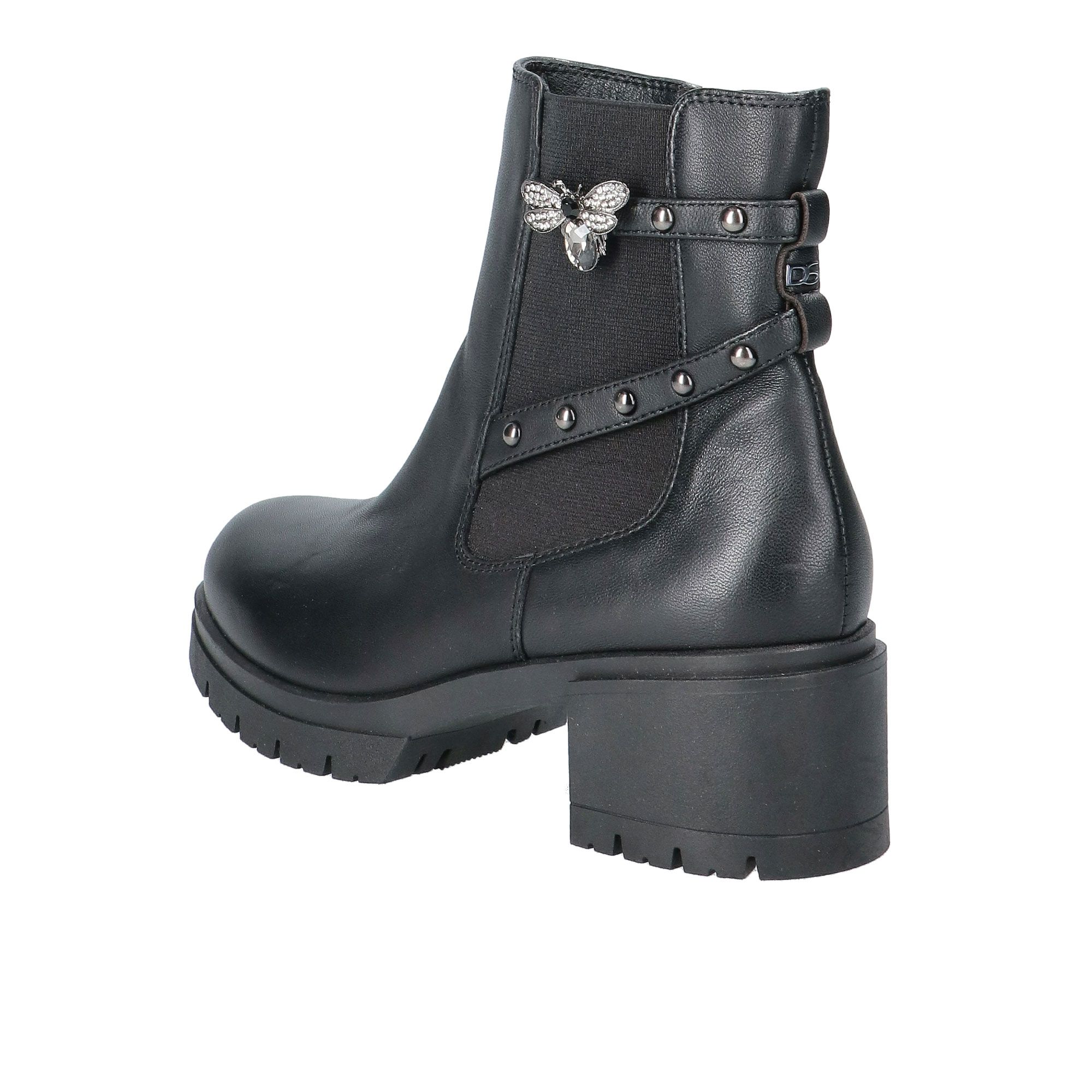 • stivaletti biker con tomaia in pelle nella parte anteriore e materiale sintetico nella parte posteriore