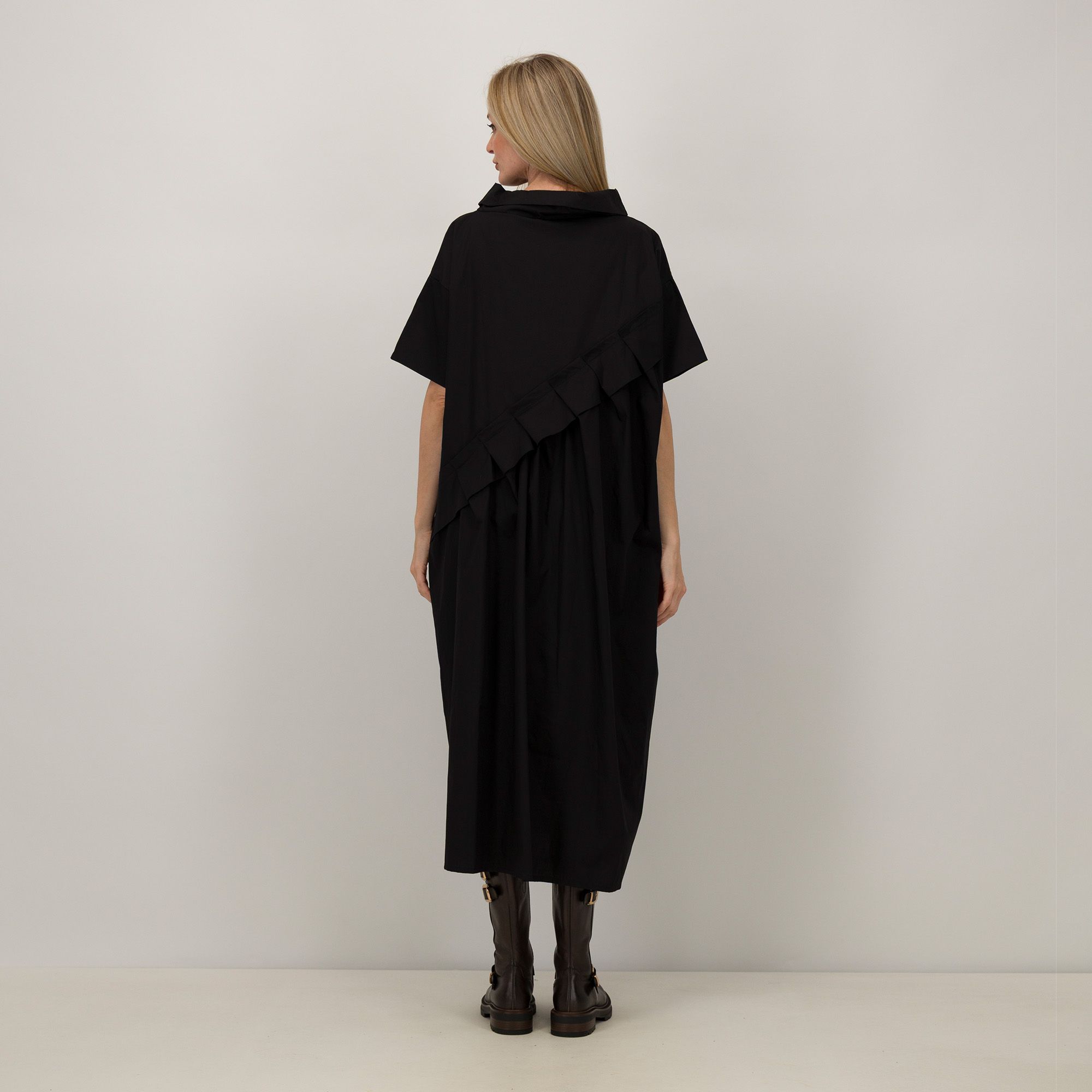 • il collo ad anello e il taglio diagonale sul davanti regalano un tocco di eleganza contemporanea