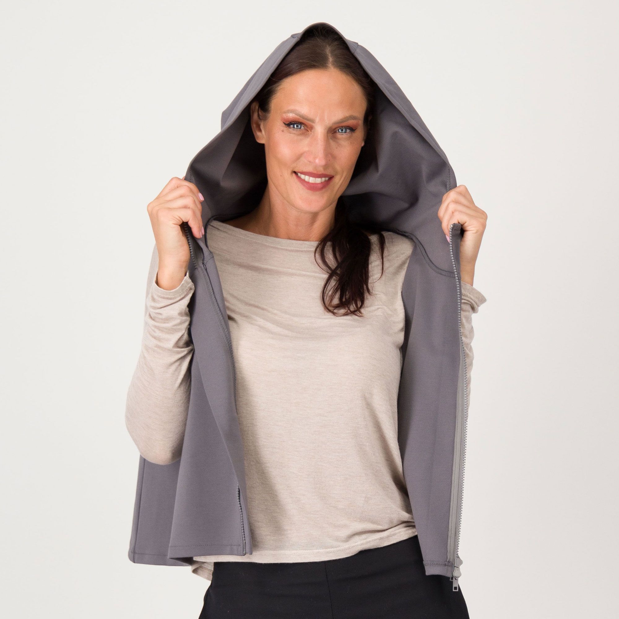 • la zip frontale ti permette di modulare lo stile e la comodità in ogni momento