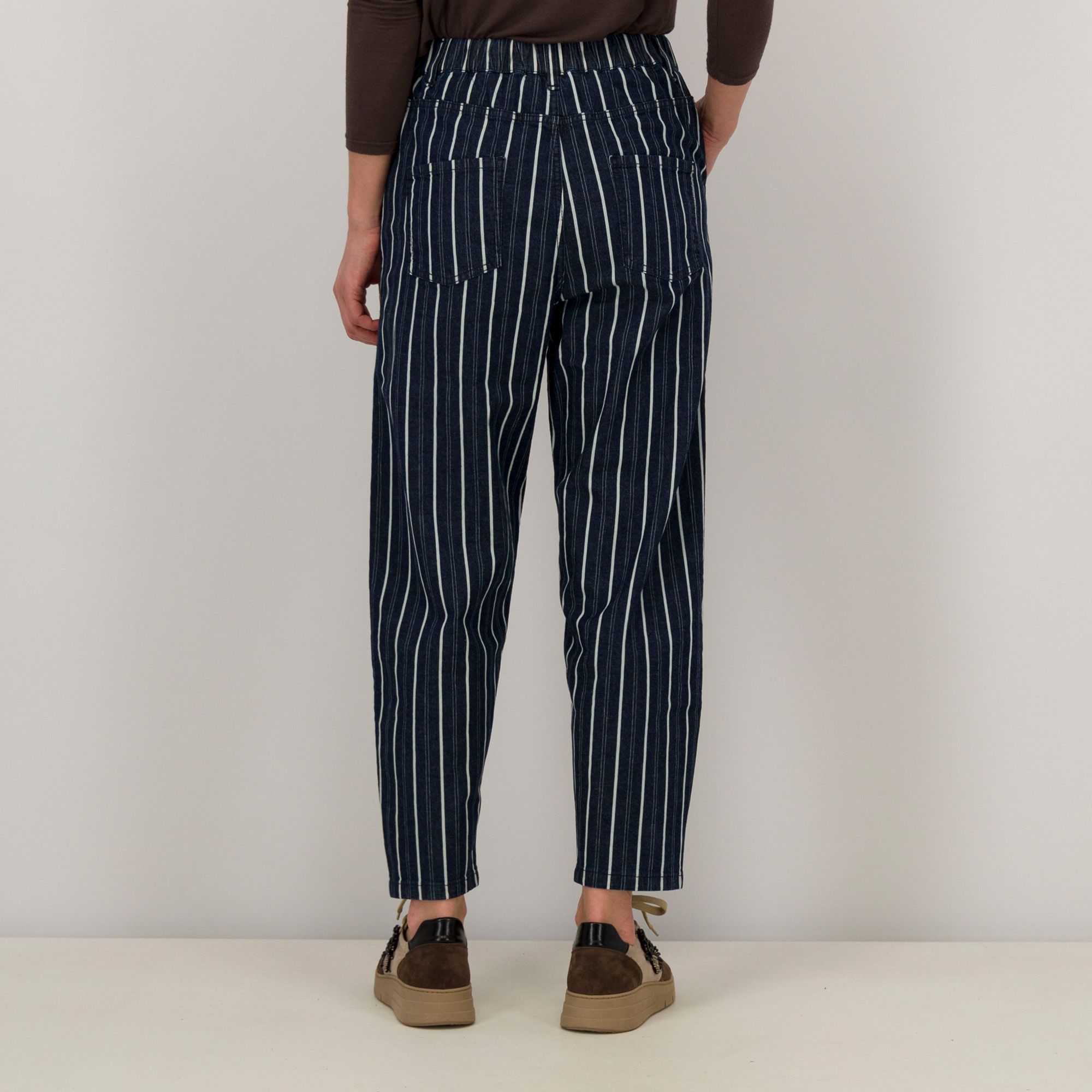 • pantaloni barrel in jeans a righe con 5 tasche