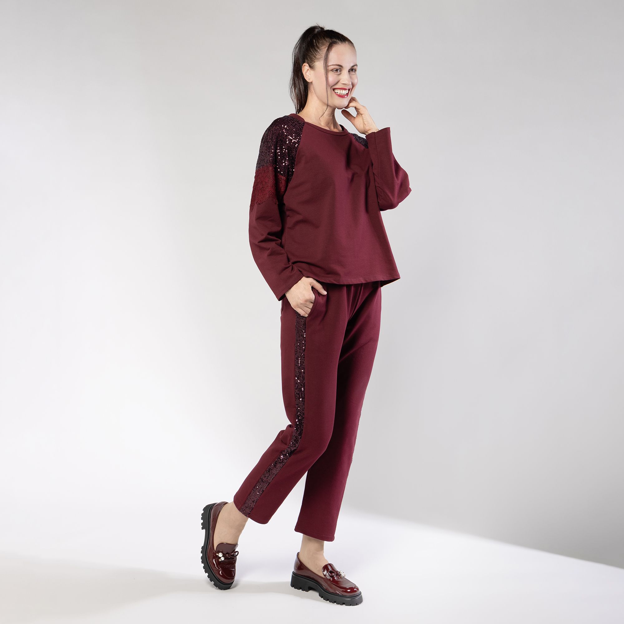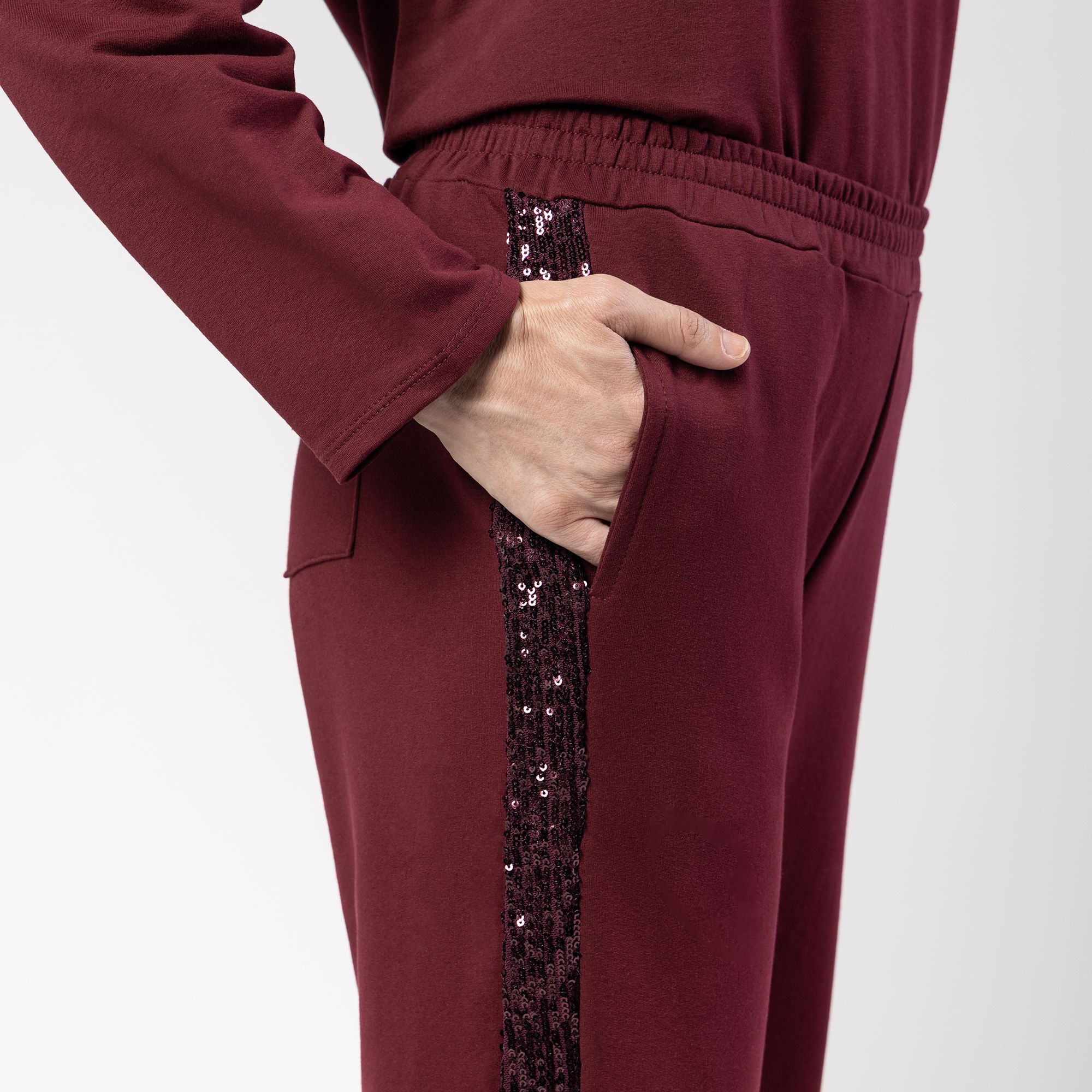 • pantaloni lunghi in felpa con banda laterale in paillettes