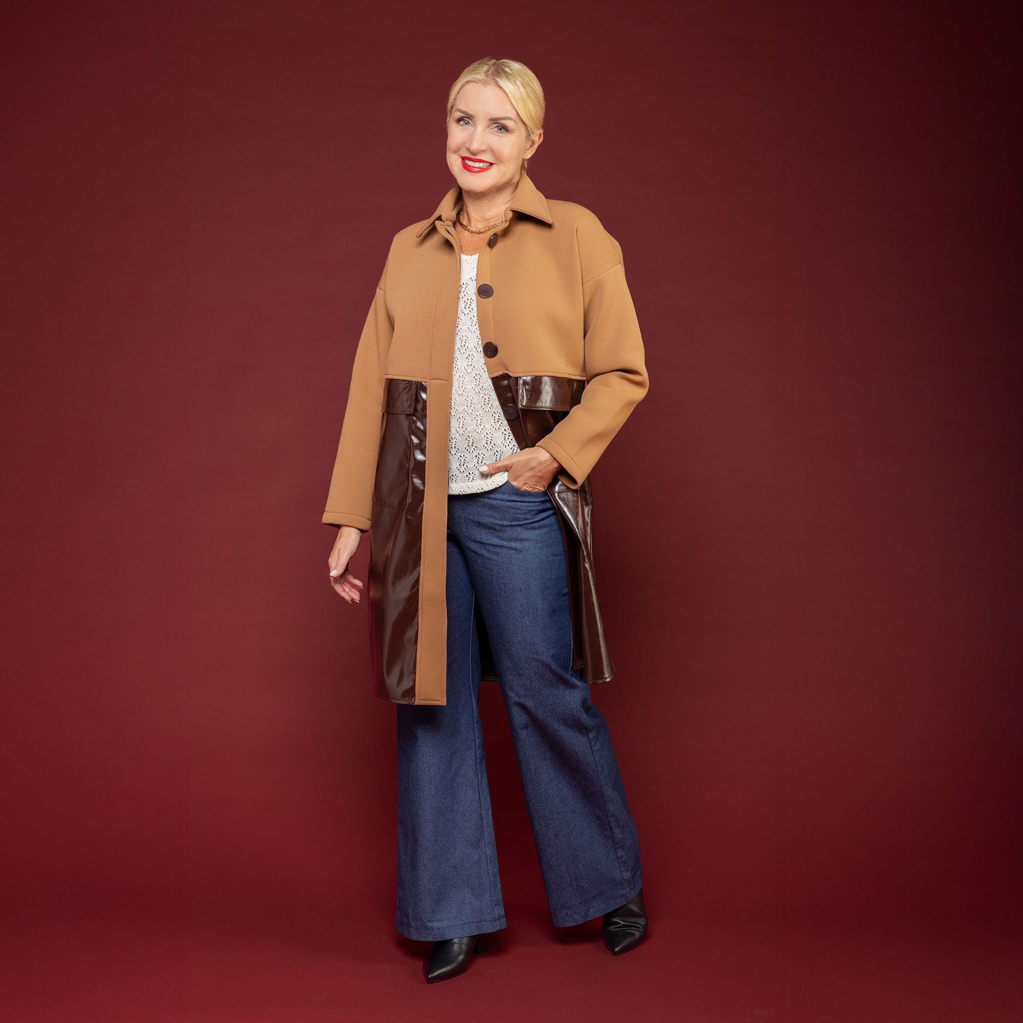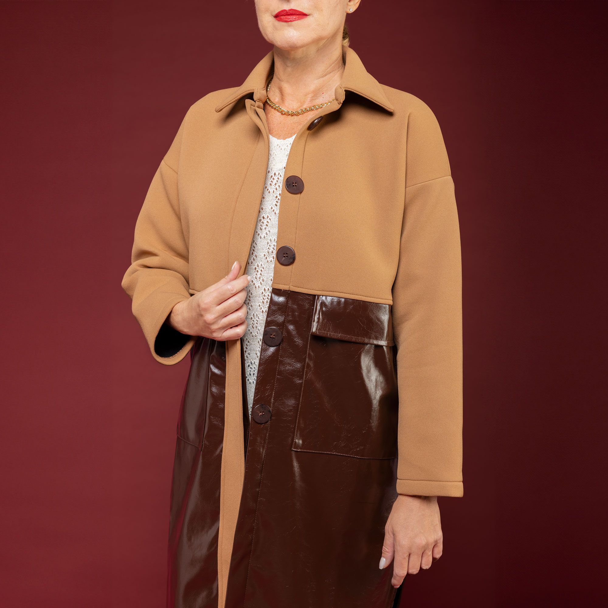 • la combinazione di tessuti dona un tocco di originalità e modernità al tuo look