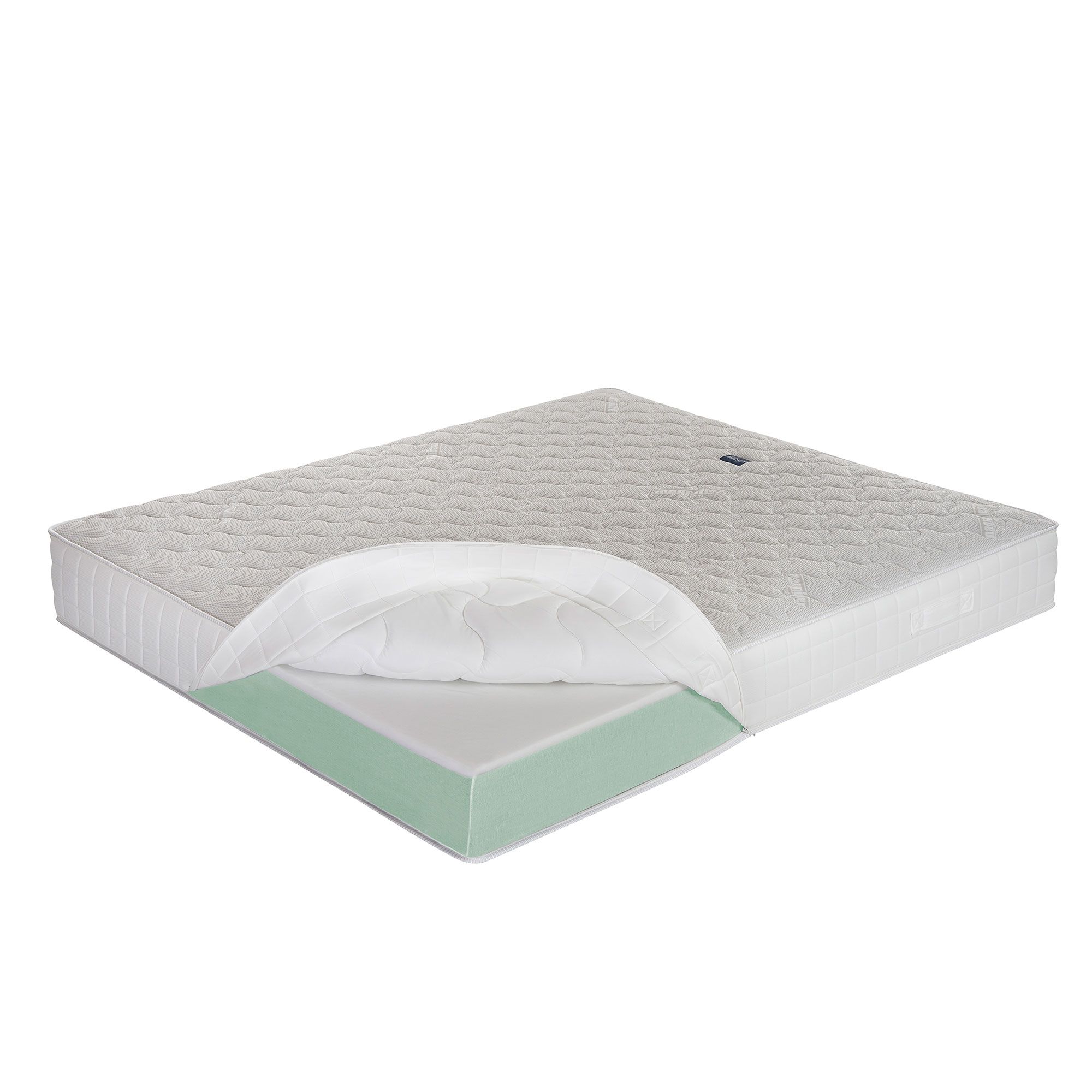 • lato estivo con topper removibile tramite zip, rivestimento con trattamento fresh a nido d'ape bianco e imbottitura in fibra Super Soft, tessuto sotto in microfibra