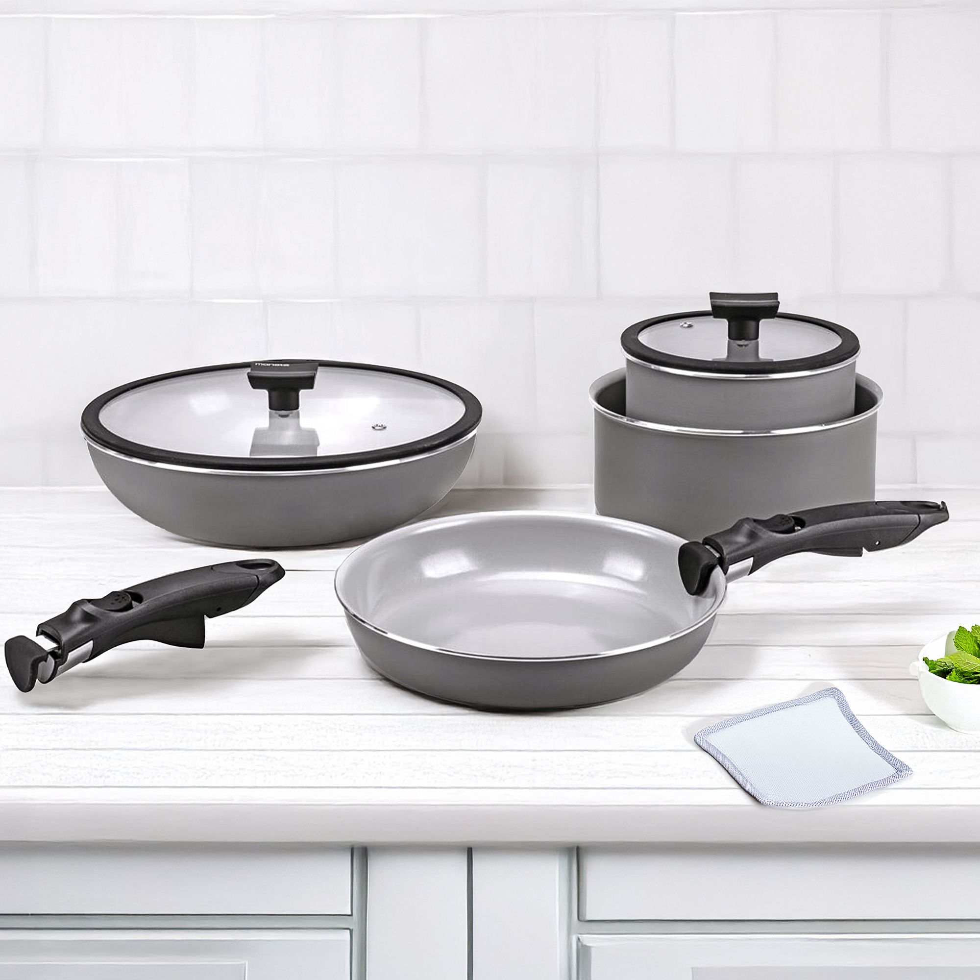 • i manici removibili rendono ogni pezzo versatile e pratico anche per il forno