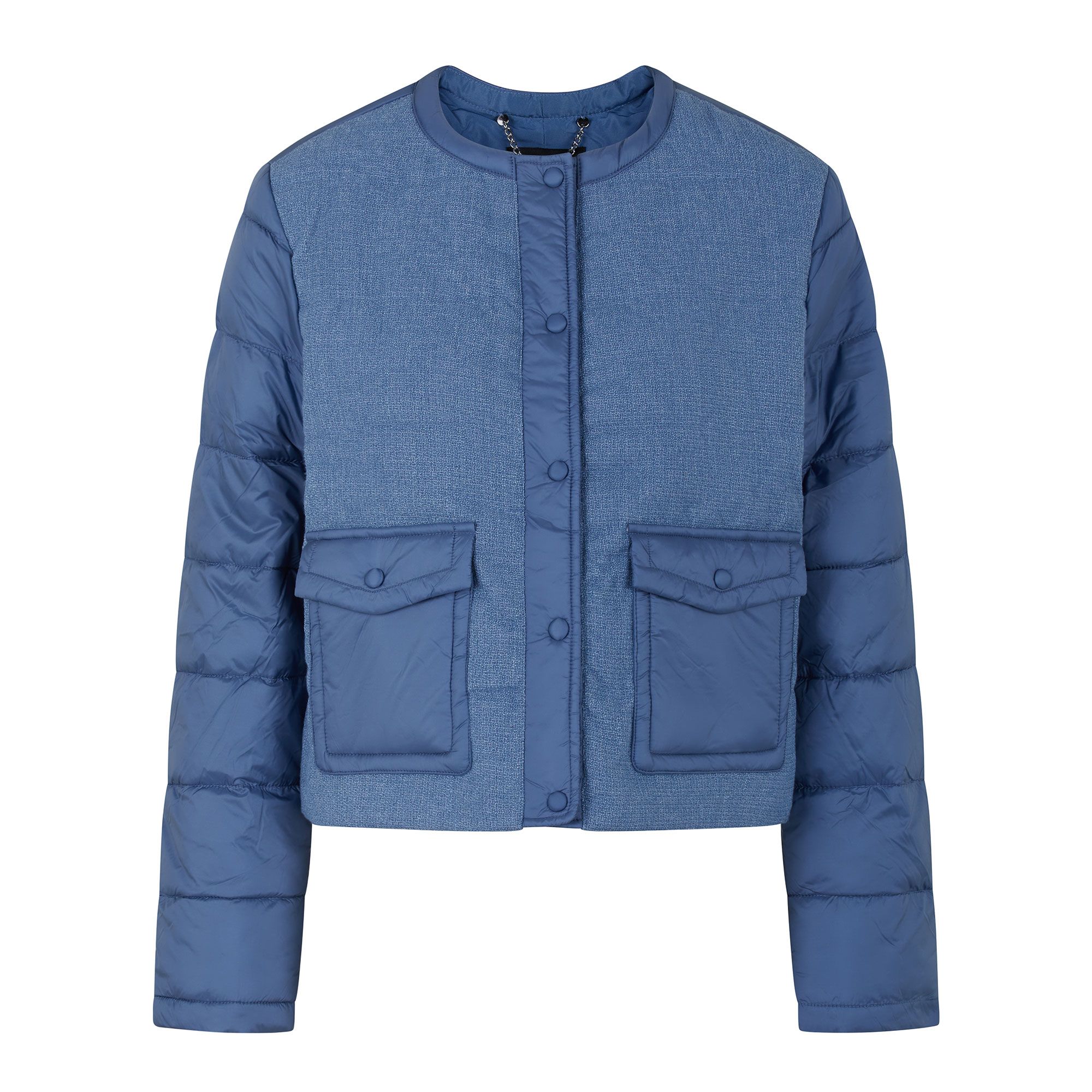 • il tessuto bouclè dona un tocco di eleganza al piumino