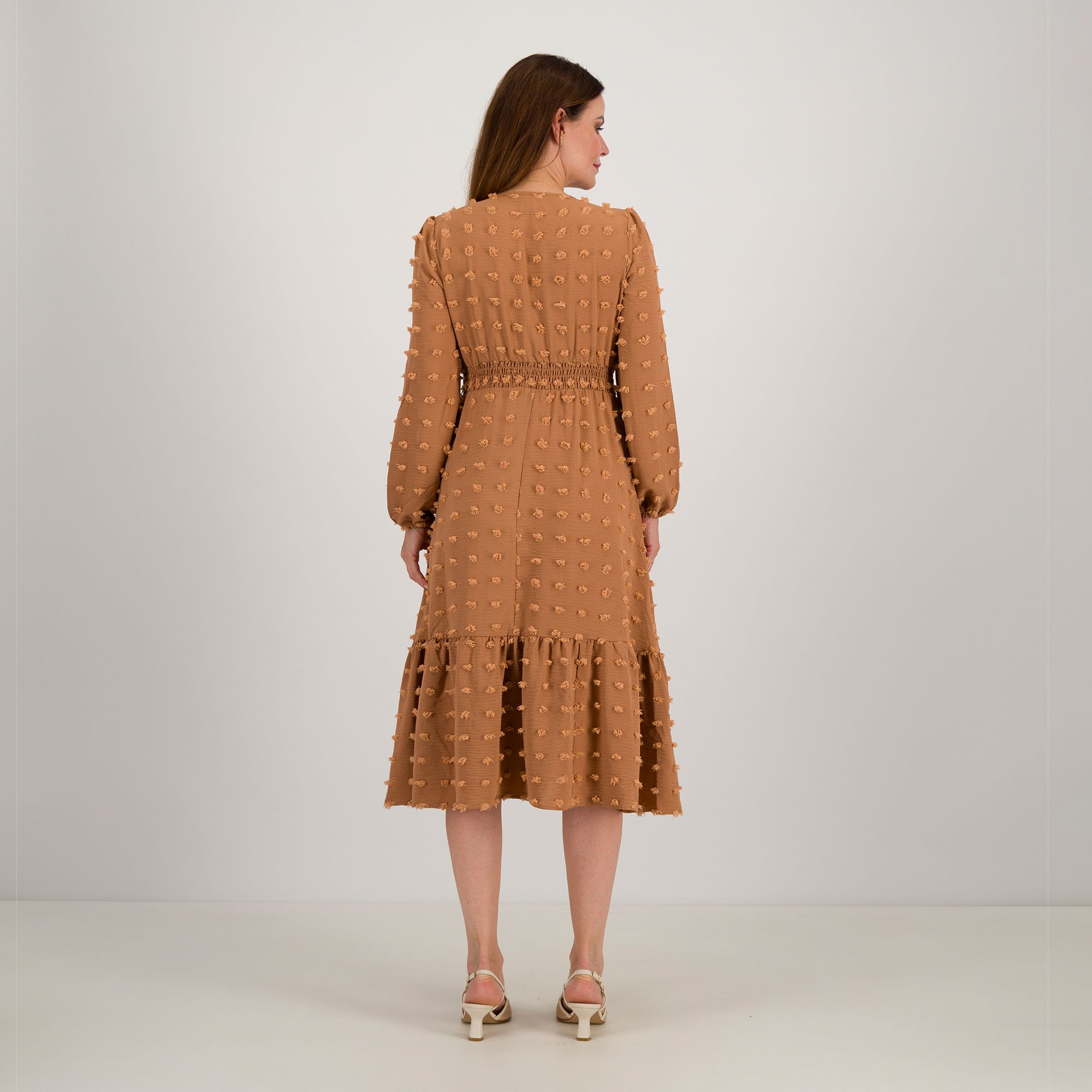 • abito midi in tessuto a onde texturizzato con effetto ponpon