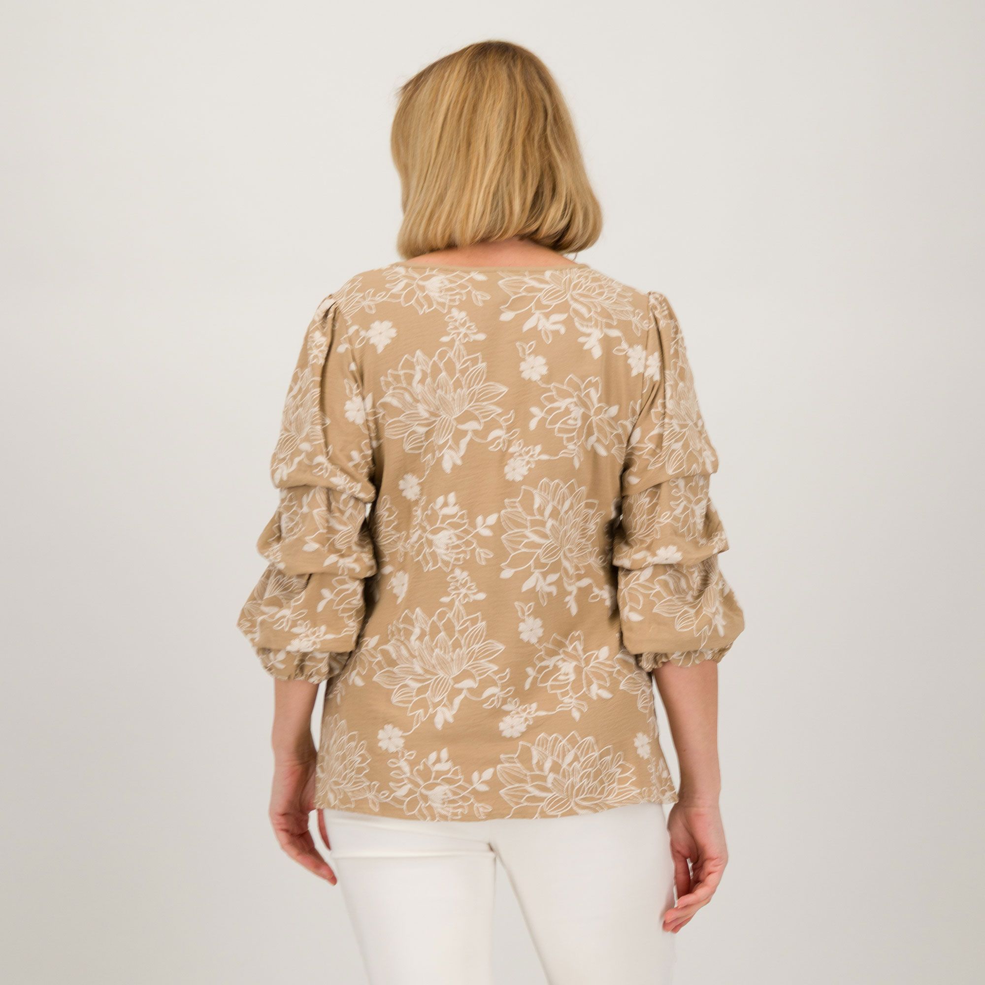 • blusa in tessuto stretch con stampa effetto ricamo in contrasto
