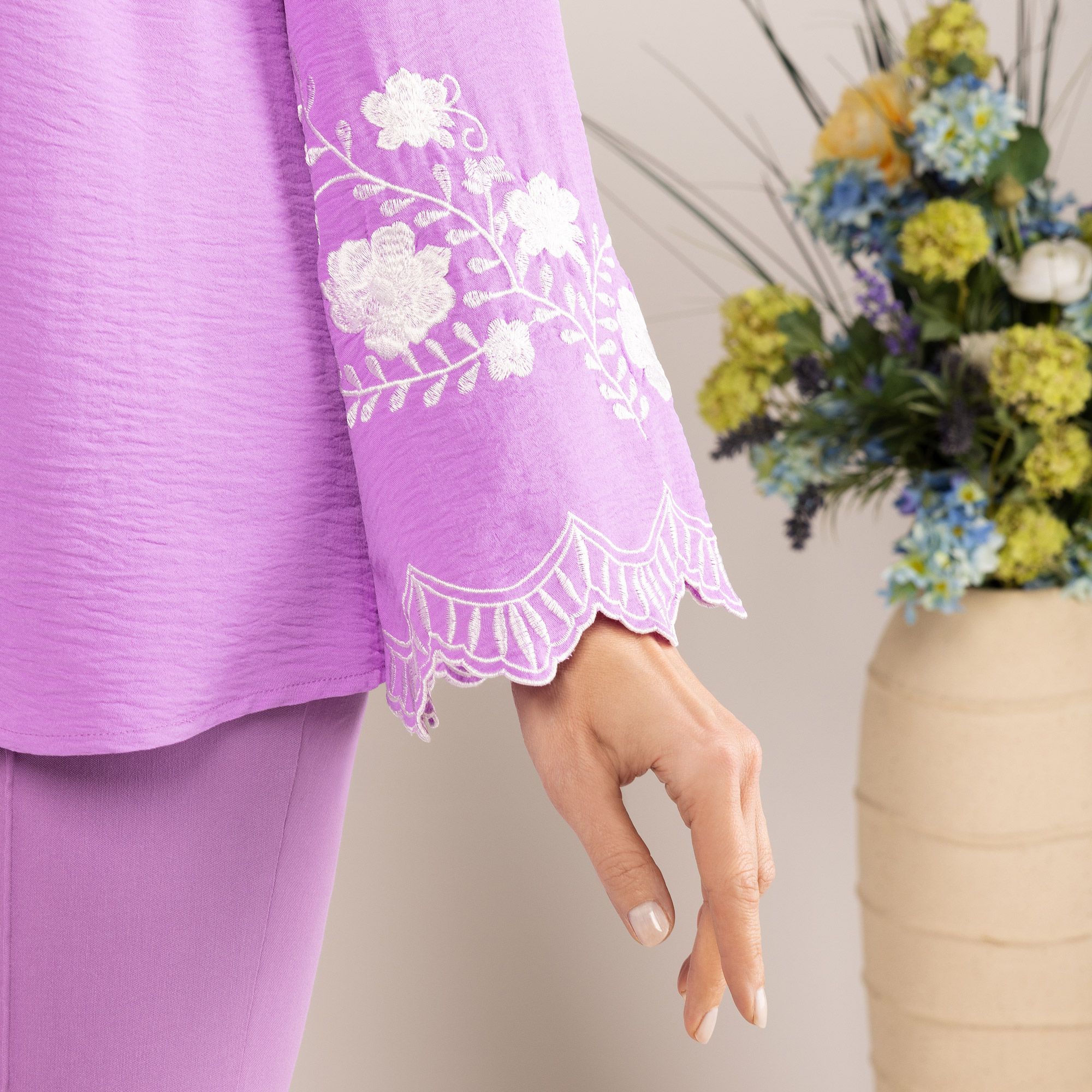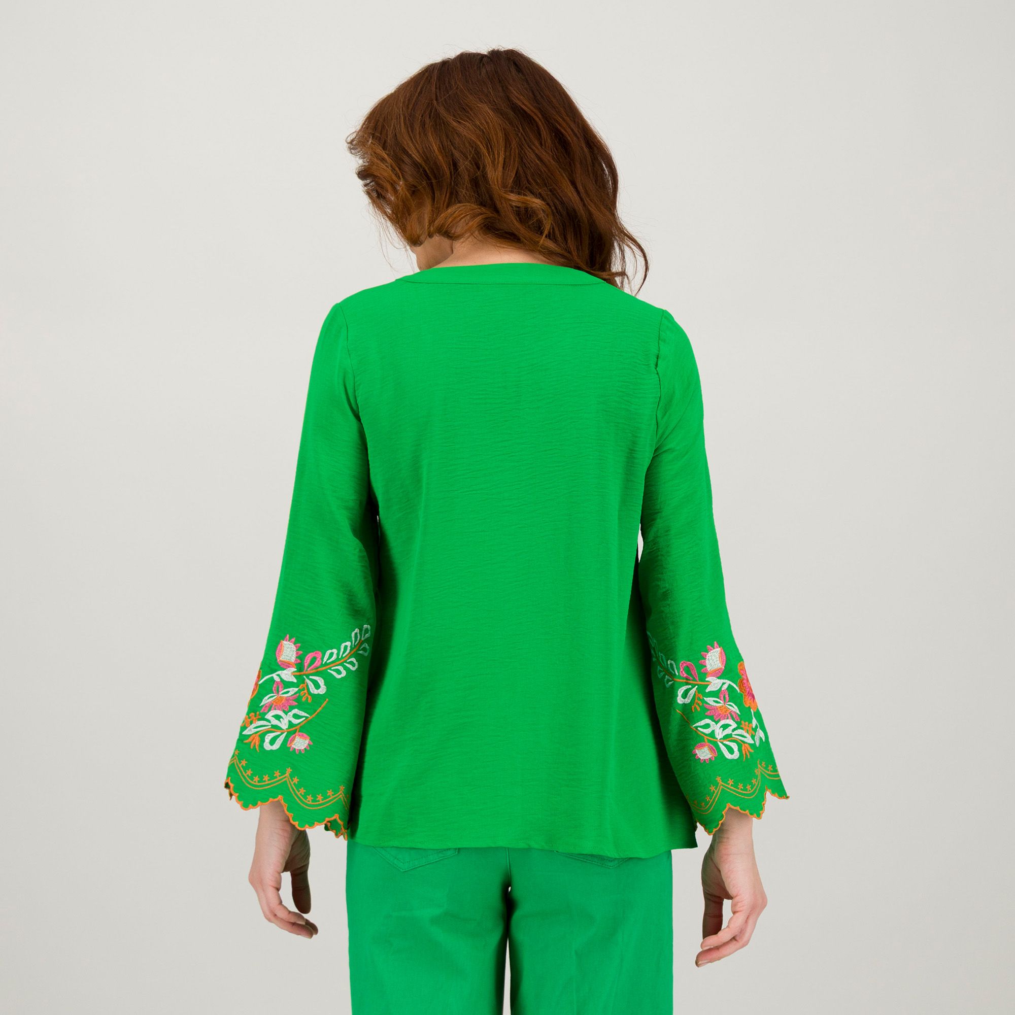 • maniche lunghe scampanate con ricamo e smerlo al fondo