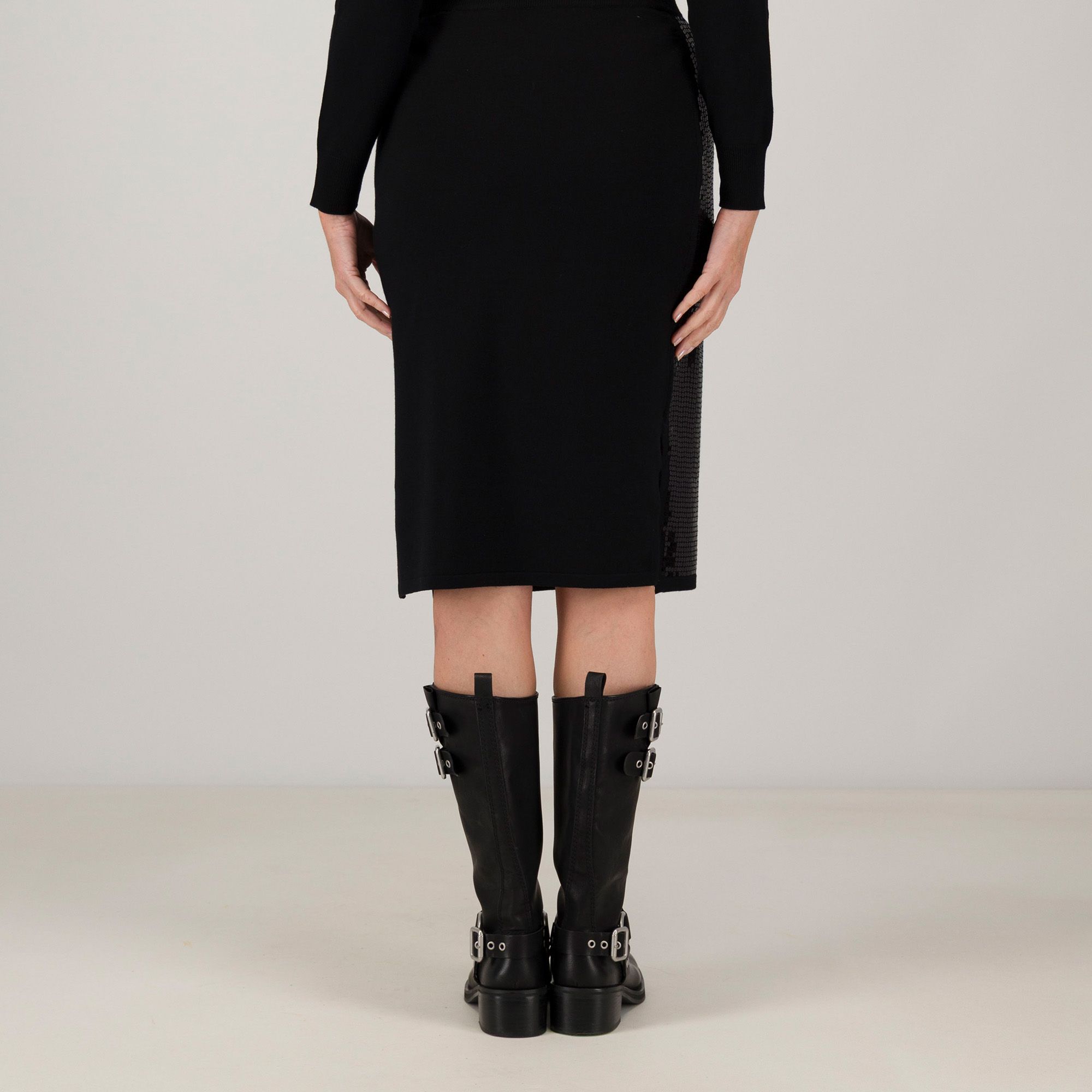 • gonna midi in maglia misto viscosa con paillettes nella parte frontale