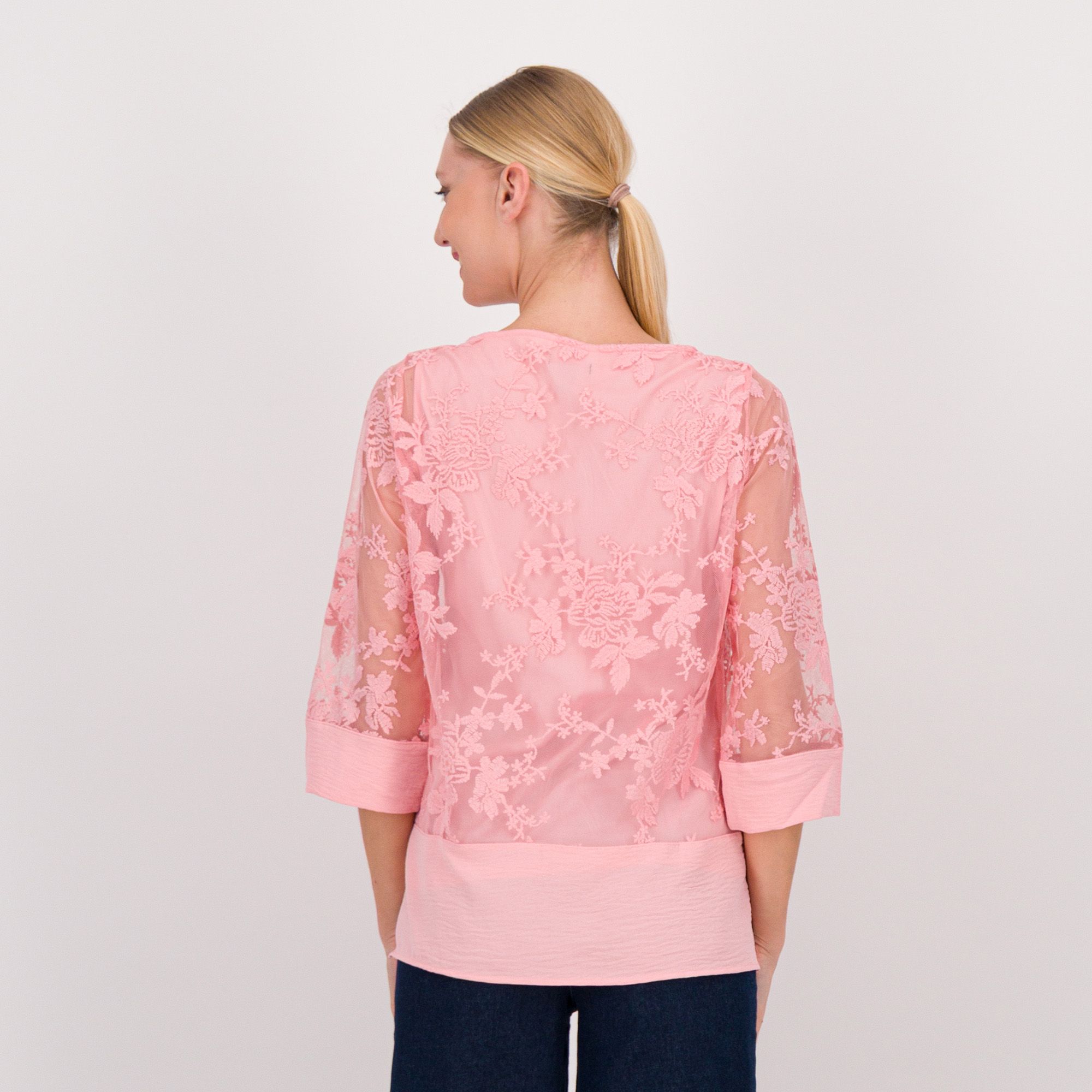 Nina Leonard Maglia linea a scatola in tulle ricamato