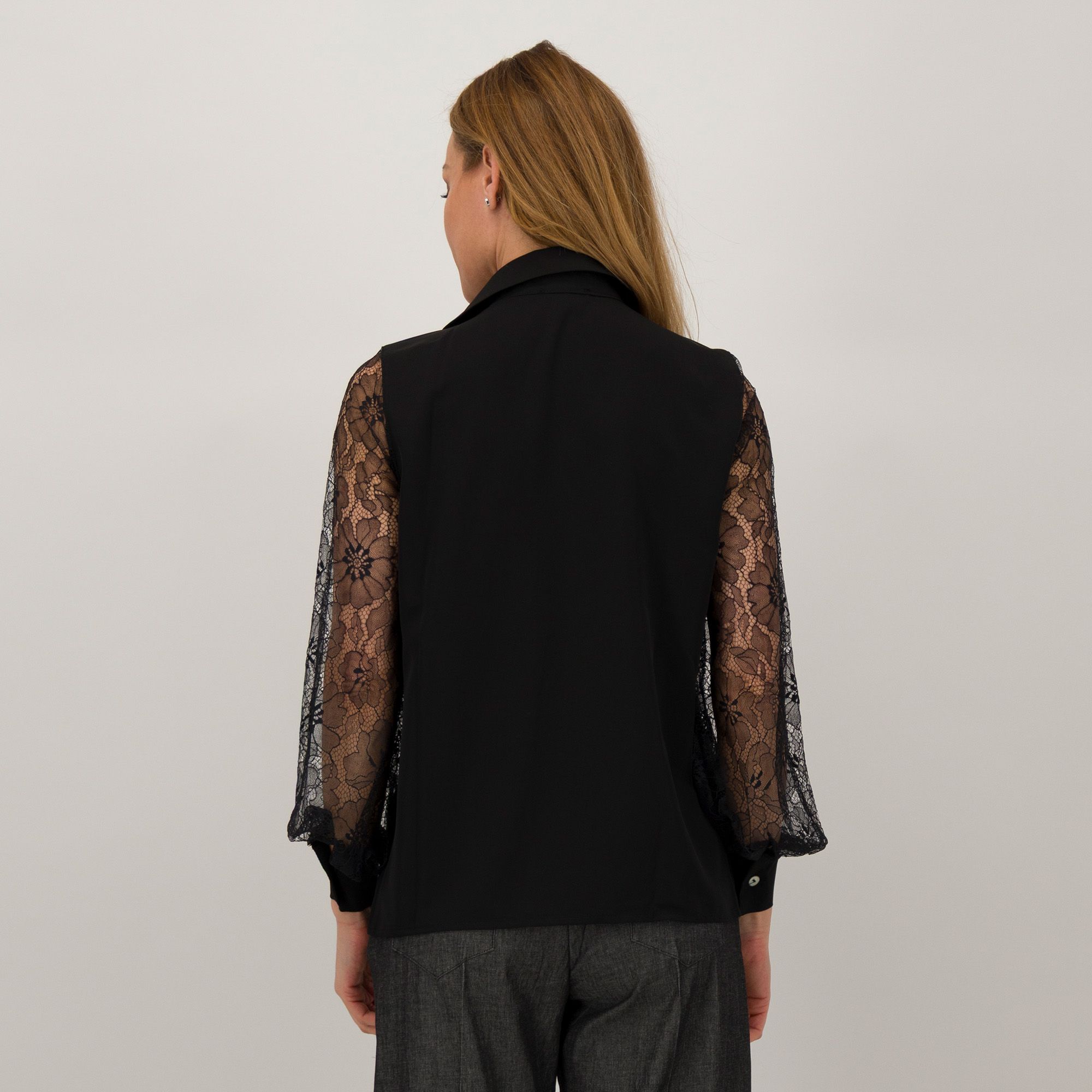• il contrasto tra il tessuto silky e il pizzo al polso crea un effetto raffinato e femminile