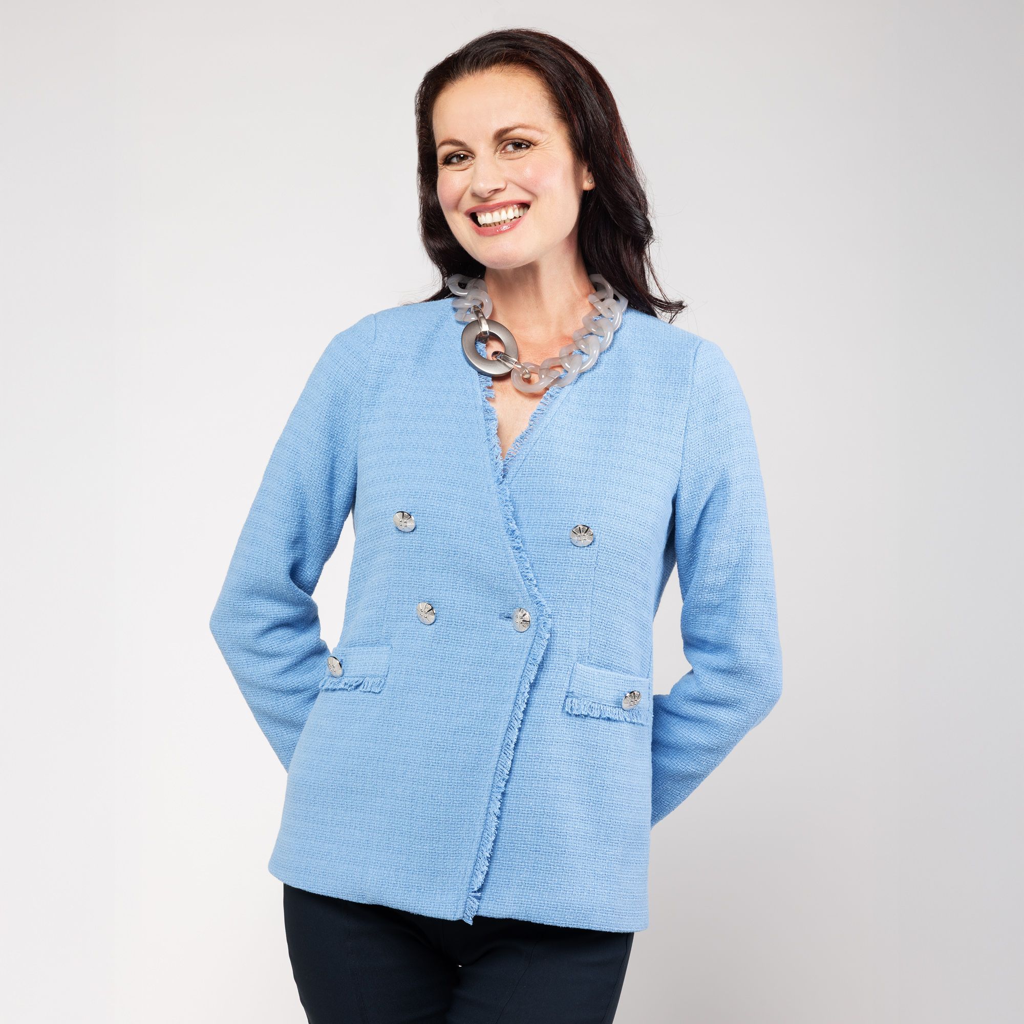 • il tessuto bouclé e i bordi sfrangiati donano carattere a ogni outfit