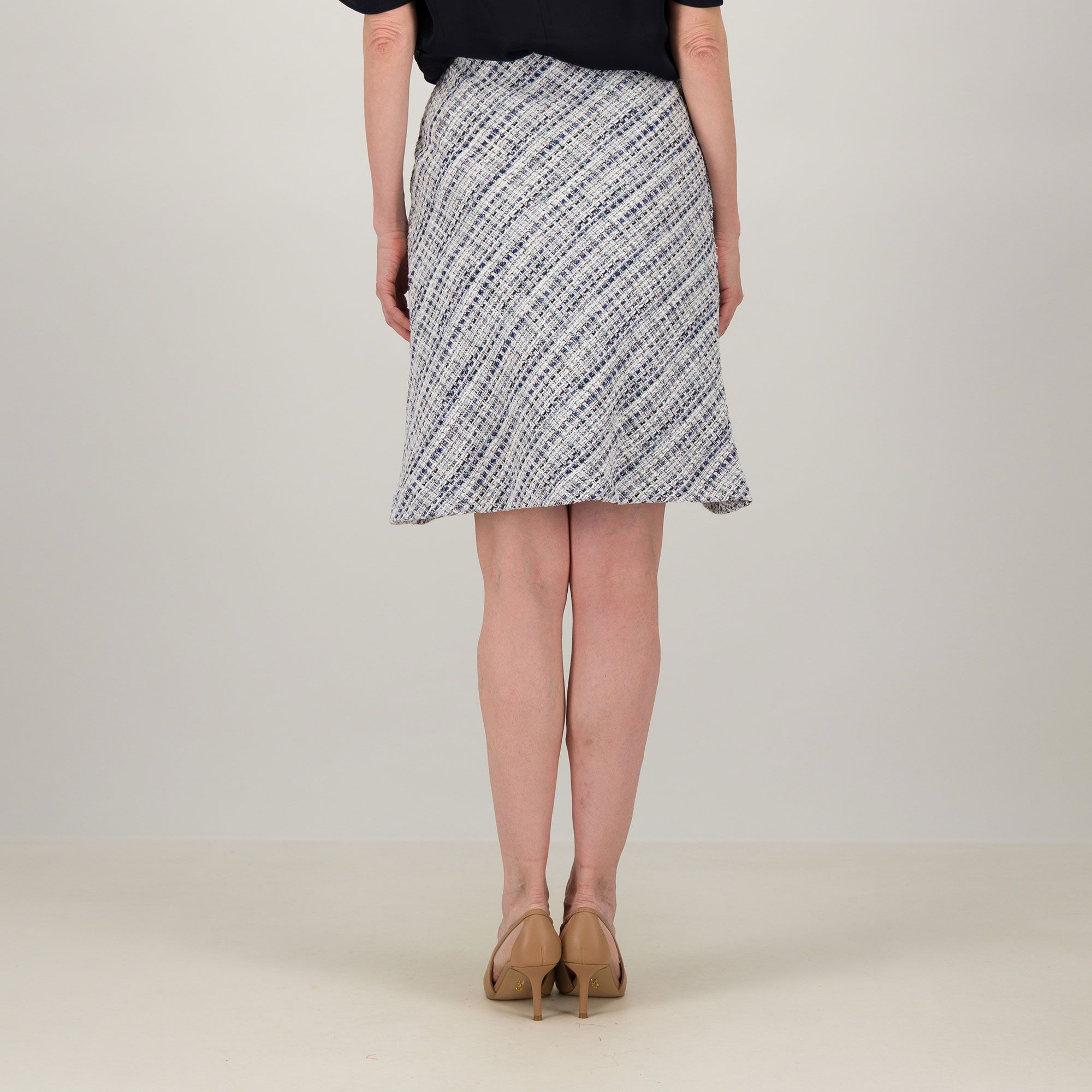 • gonna corta in tessuto bouclé tagliato in sbieco, foderata