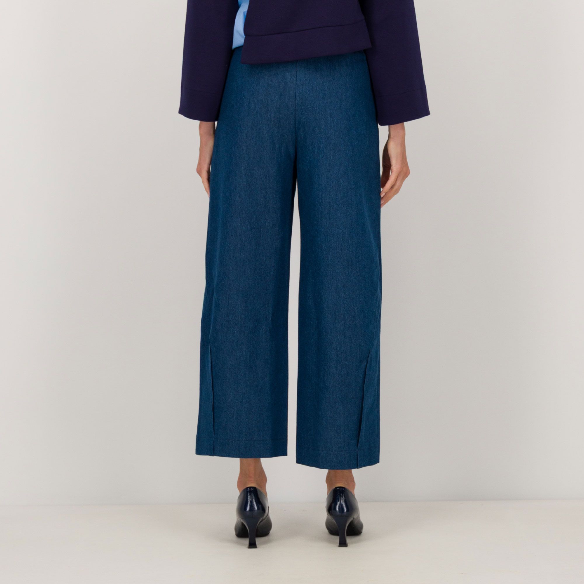 • il tessuto jeans con nervatura centrale dona un tocco sartoriale e slancia la figura